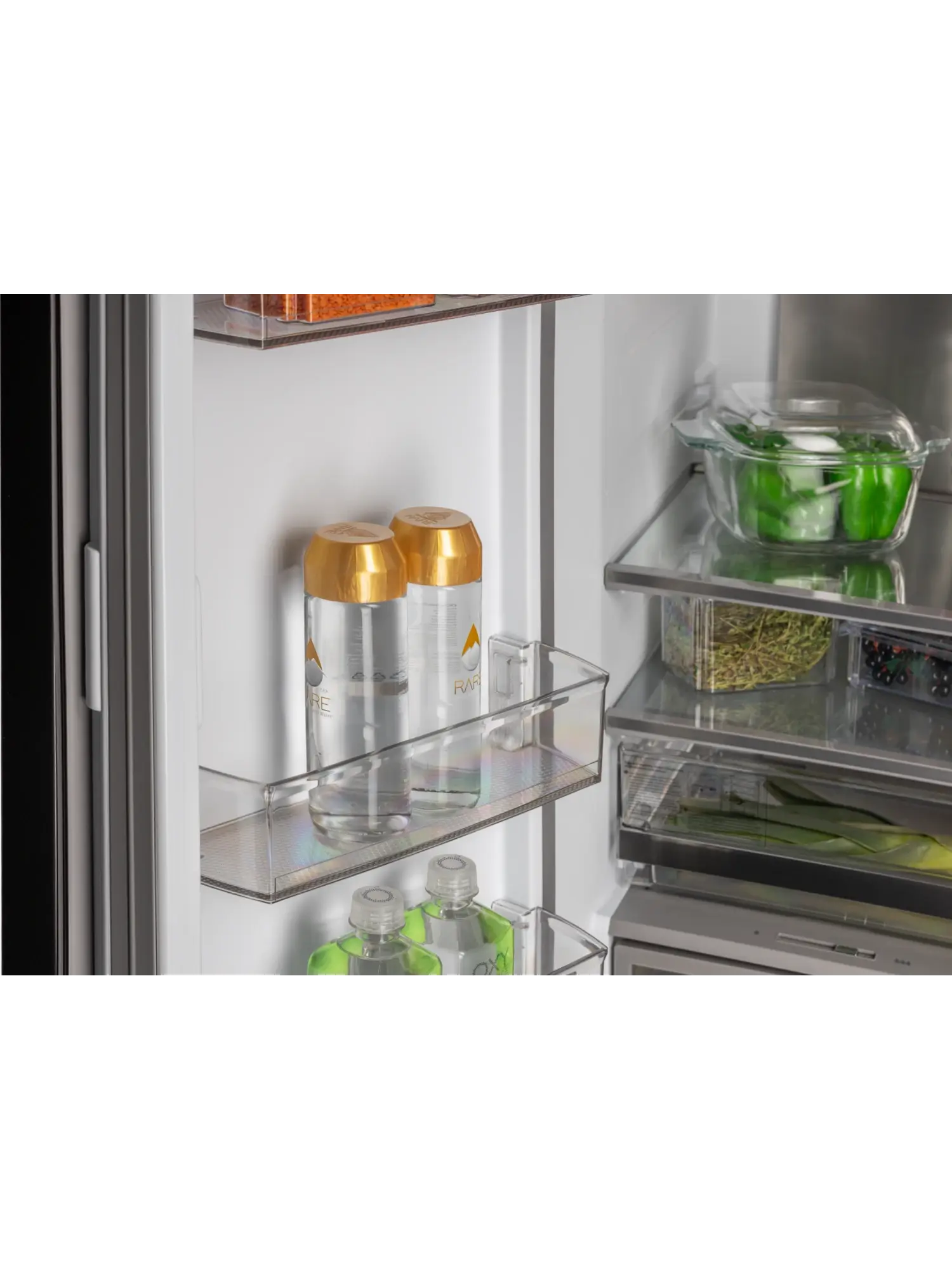 – полки внутри холодильной и морозильной камер выполнены из закаленного стекла и имеют пружинный замок — стабильная структура с премиальным внешним видом;