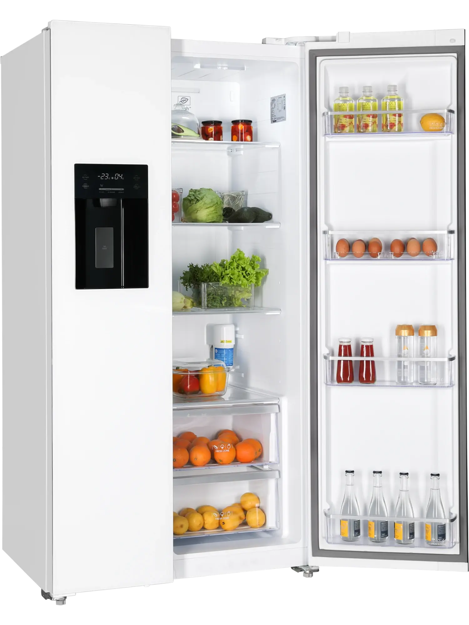Отдельностоящий холодильник HIBERG RFS 650 DX NFGW Side-by-Side предназначен для хранения большого количества продуктов и напитков в частных и загородных домах, крупногабаритных квартирах и офисах.