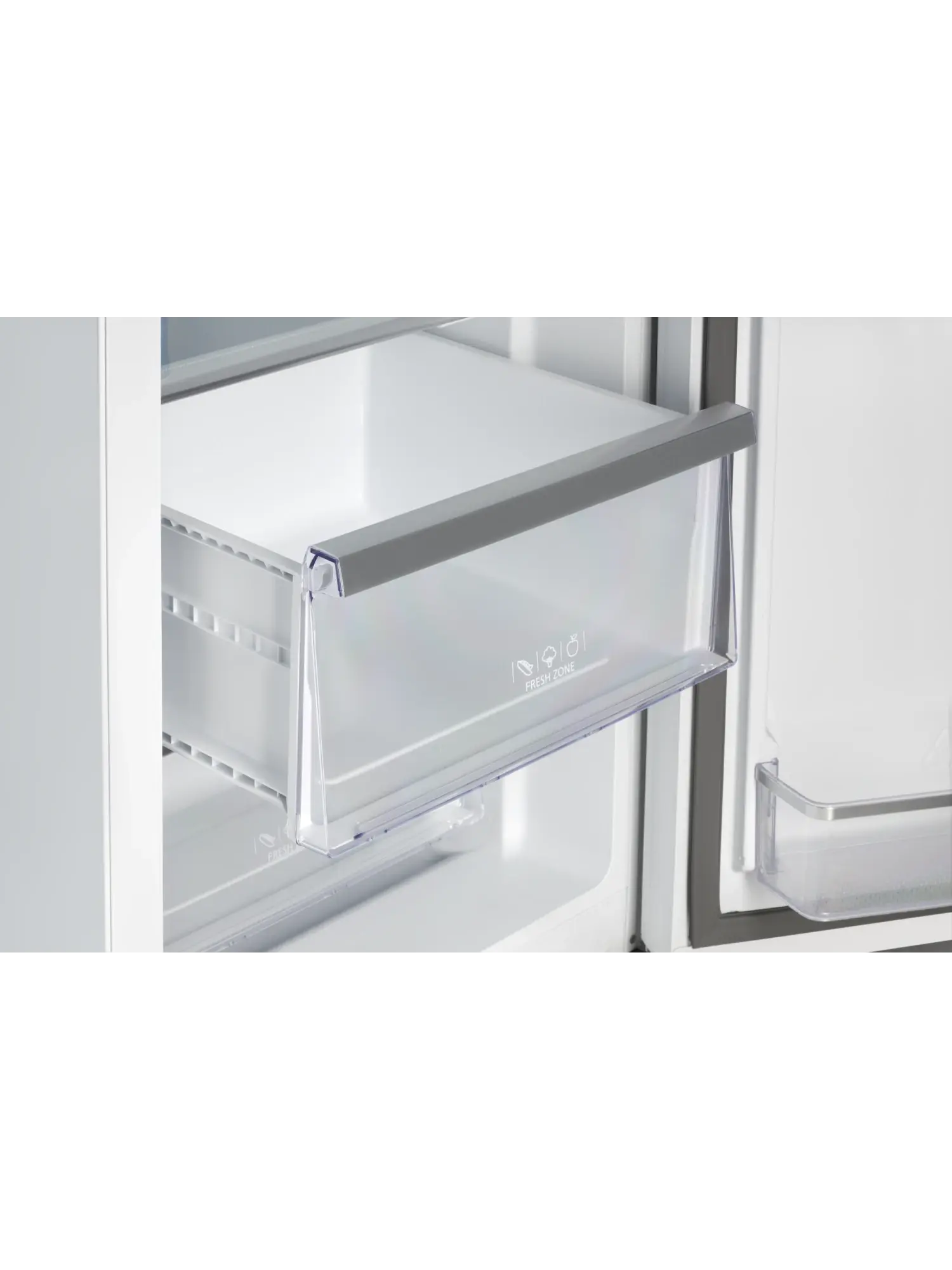 Холодильник состоит из морозильной и холодильной камеры повышенного объема. Общий объем составляет 618 л. Две двери позволяют получить доступ к продуктам, не выпуская холод из остальной части холодильника, благодаря открыванию дверь в дверь.