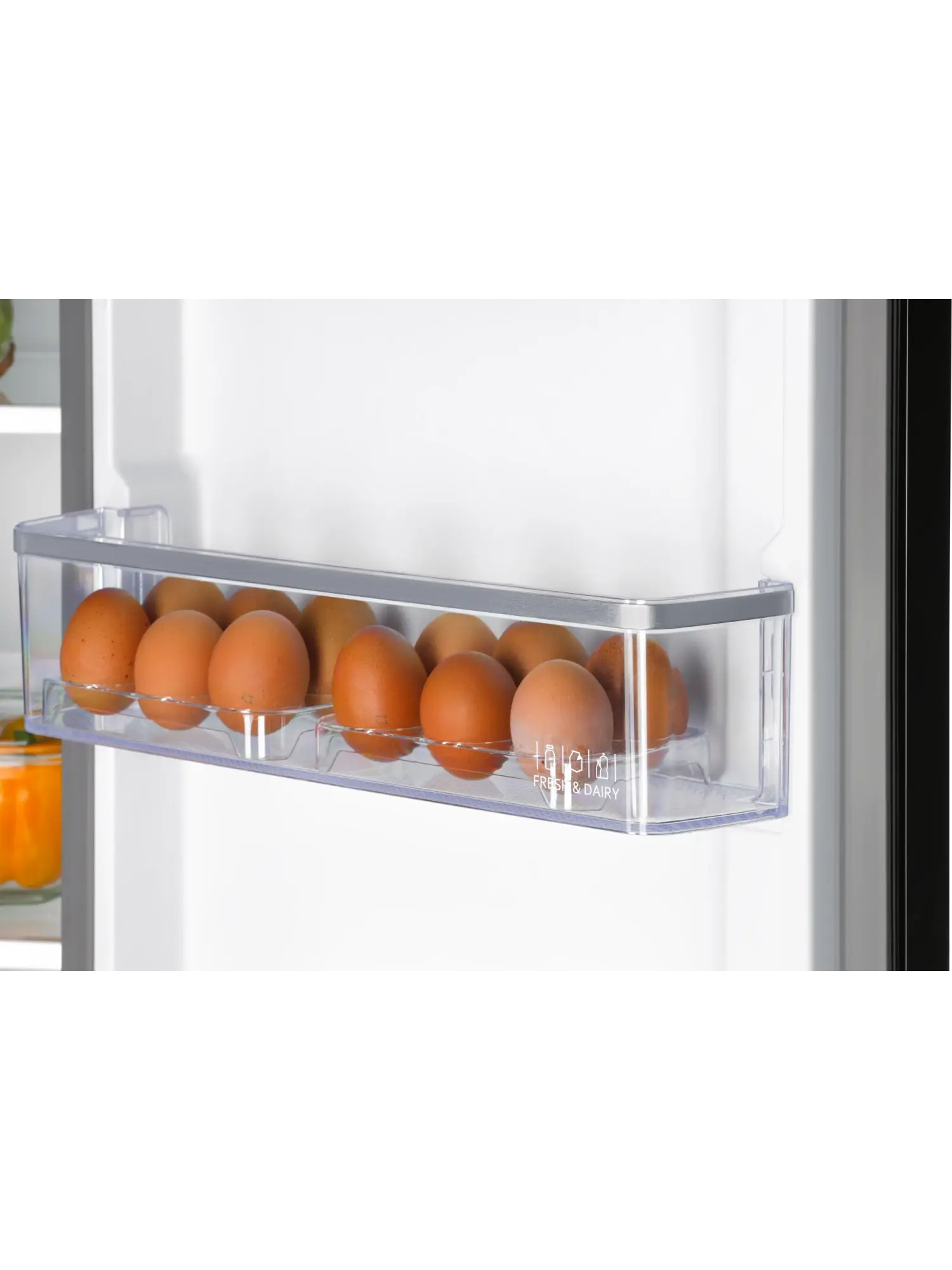 Холодильник оснащен системой Total No Frost, которая с помощью равномерного распределения циркулирующего холодного воздуха позволяет поддерживать стабильную температуру внутри рабочих камер без образования инея и наледи. Технология облегчает уход за устройством и сохраняет полезные свойства продуктов.