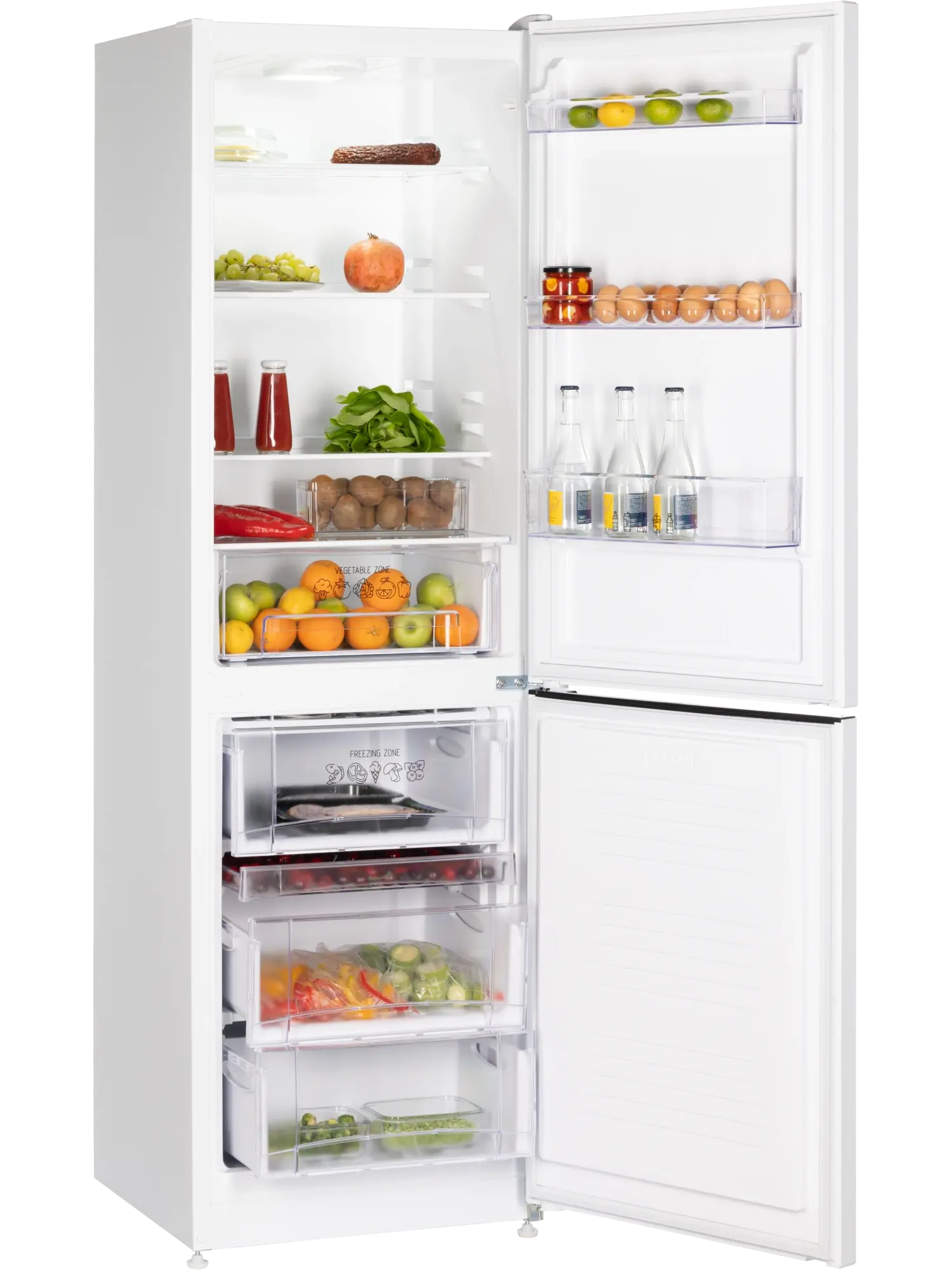 Модель с общим объемом 320 литров и нижним расположением морозильной камеры выполнена в белом цвете. Классический корпус с горизонтальными интегрированными ручками впишется в интерьер любой кухни — от минимализма до уютной классики.