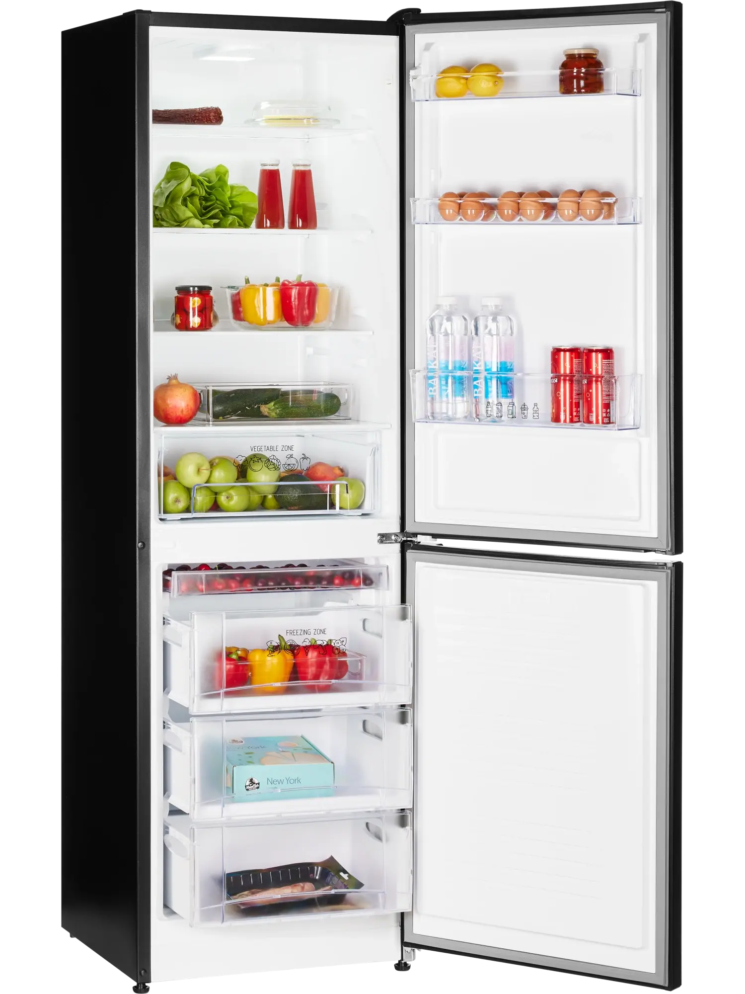 - в 3 прозрачных ящиках морозильной камеры легко разместятся объемные куски мяса, птица целиком, рыба и другие продукты.