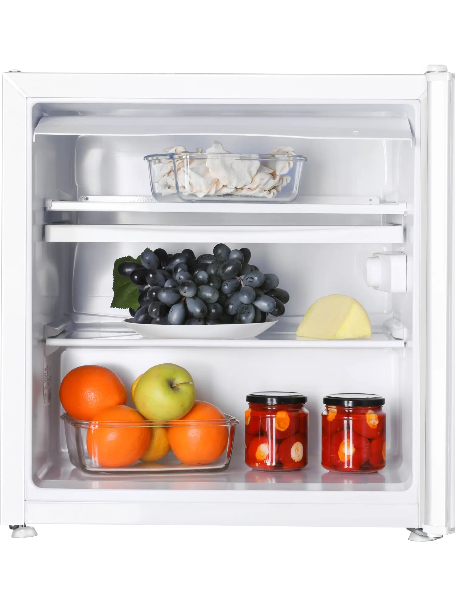 - 2 полки на дверце для бутылок с напитками, герметичных упаковок с сырами и йогуртами;