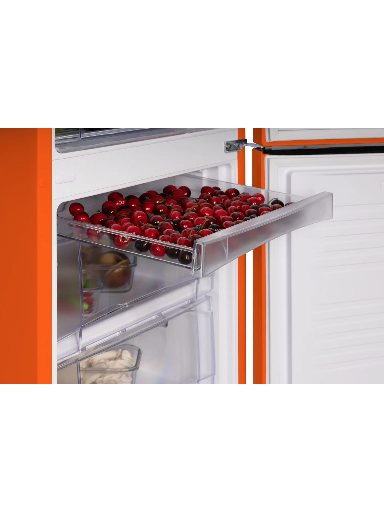 Высота 188 см делает устройство вместительным, но при этом визуально легким. Модель выполнена в стильном и лаконичном дизайне, в оранжевом матовом цвете
