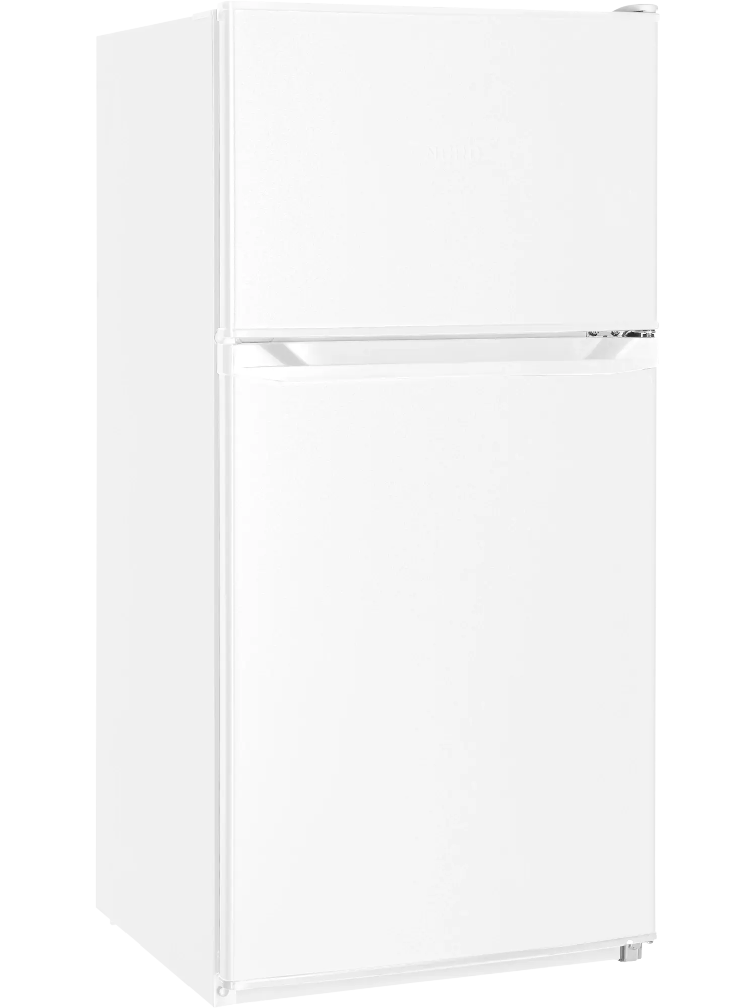 Двухкамерный отдельностоящий холодильник Nord NRT 143 032 с верхним расположением морозильной камеры имеет общий объем 190 литров и высоту 124 см.