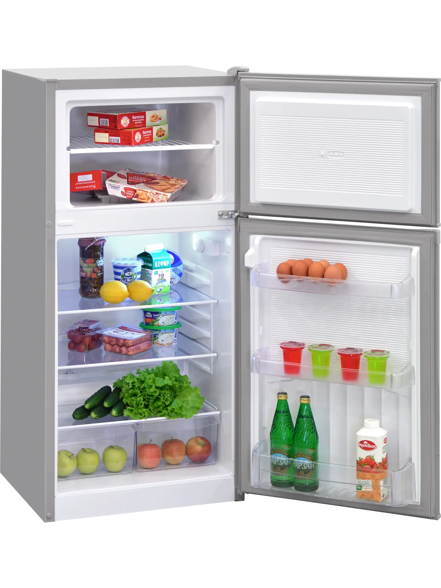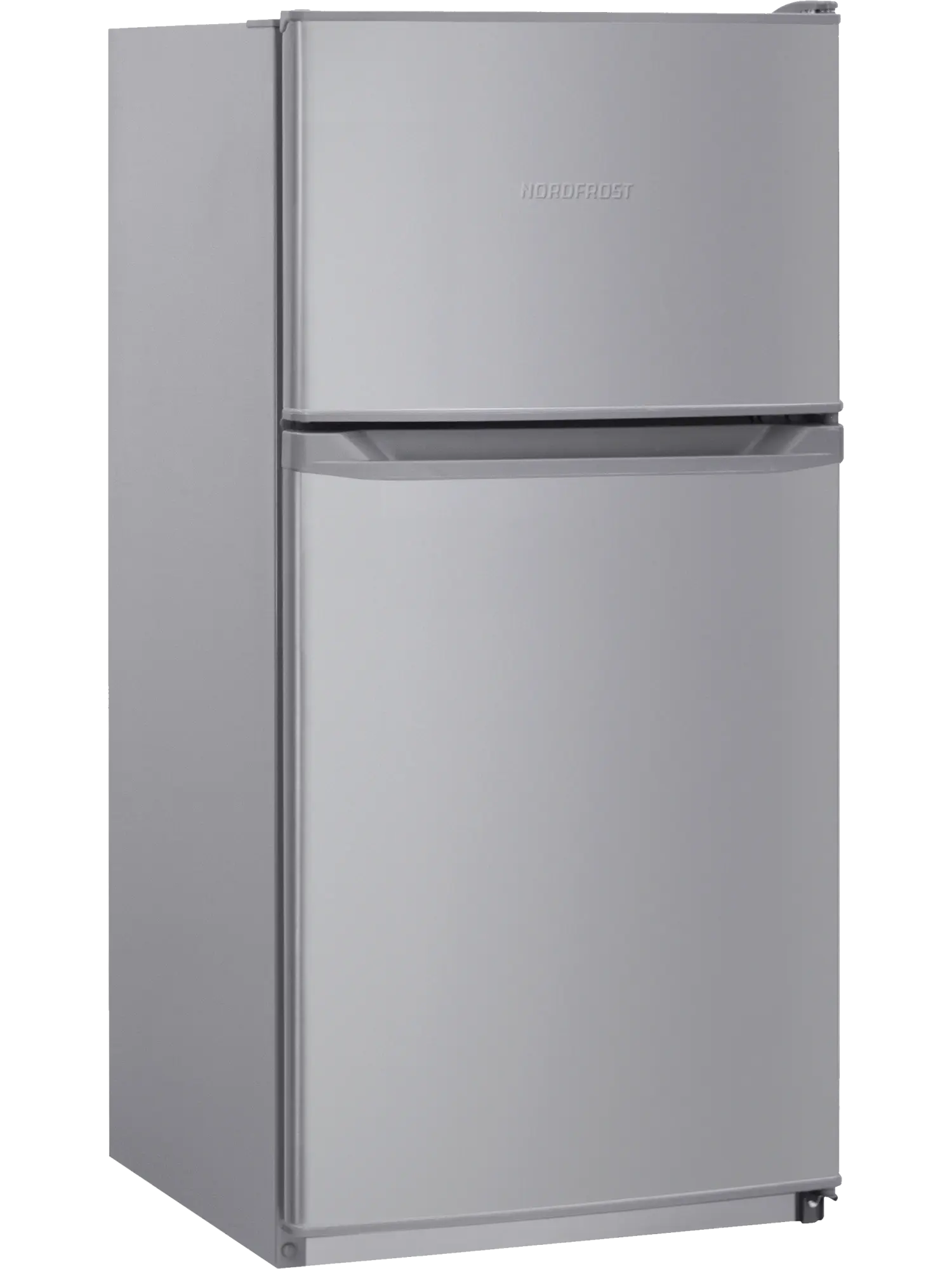 Двухкамерный отдельностоящий холодильник Nord NRT 143 132 с верхним расположением морозильной камеры имеет общий объем 190 литров и высоту 124 см.