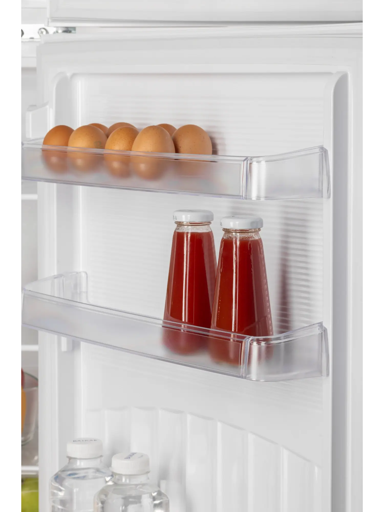 Благодаря лаконичному дизайну двухкамерный холодильник белого цвета станет гармоничной частью актуального интерьера. Перенавешиваемые двери с горизонтальными интегрированными ручками позволяют адаптировать их под планировку кухни. Уплотнитель легко снимается и очищается при необходимости.