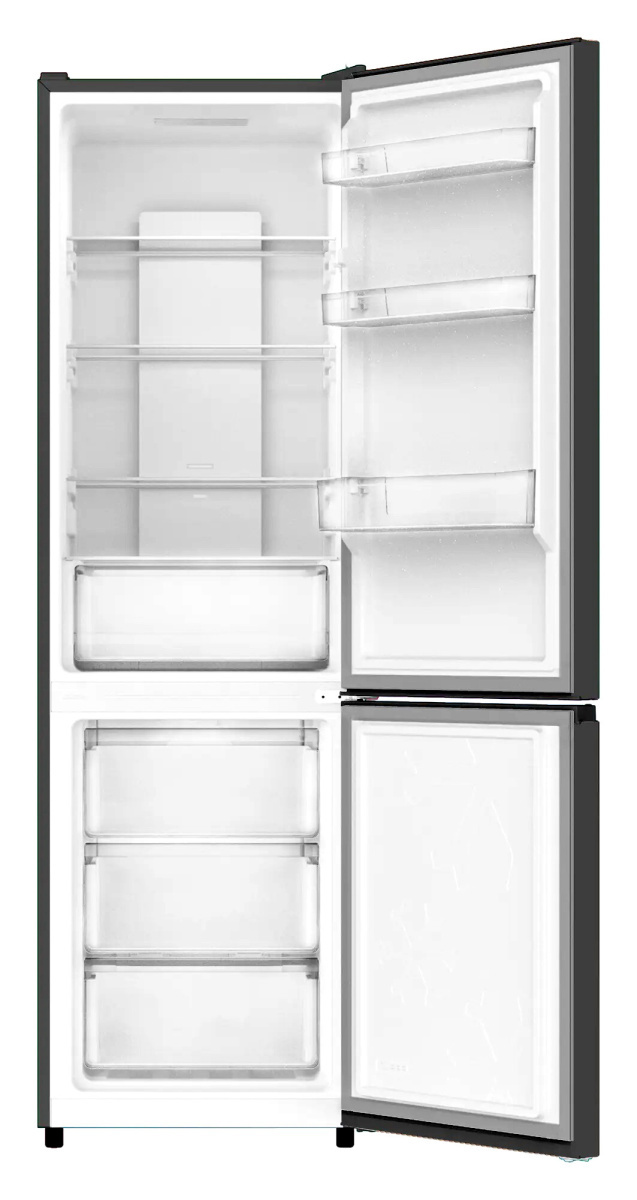 Двухкамерный отдельностоящий холодильник Nord RFC 390 NFXd с нижним расположением морозильной камеры имеет общий объем 378 л.