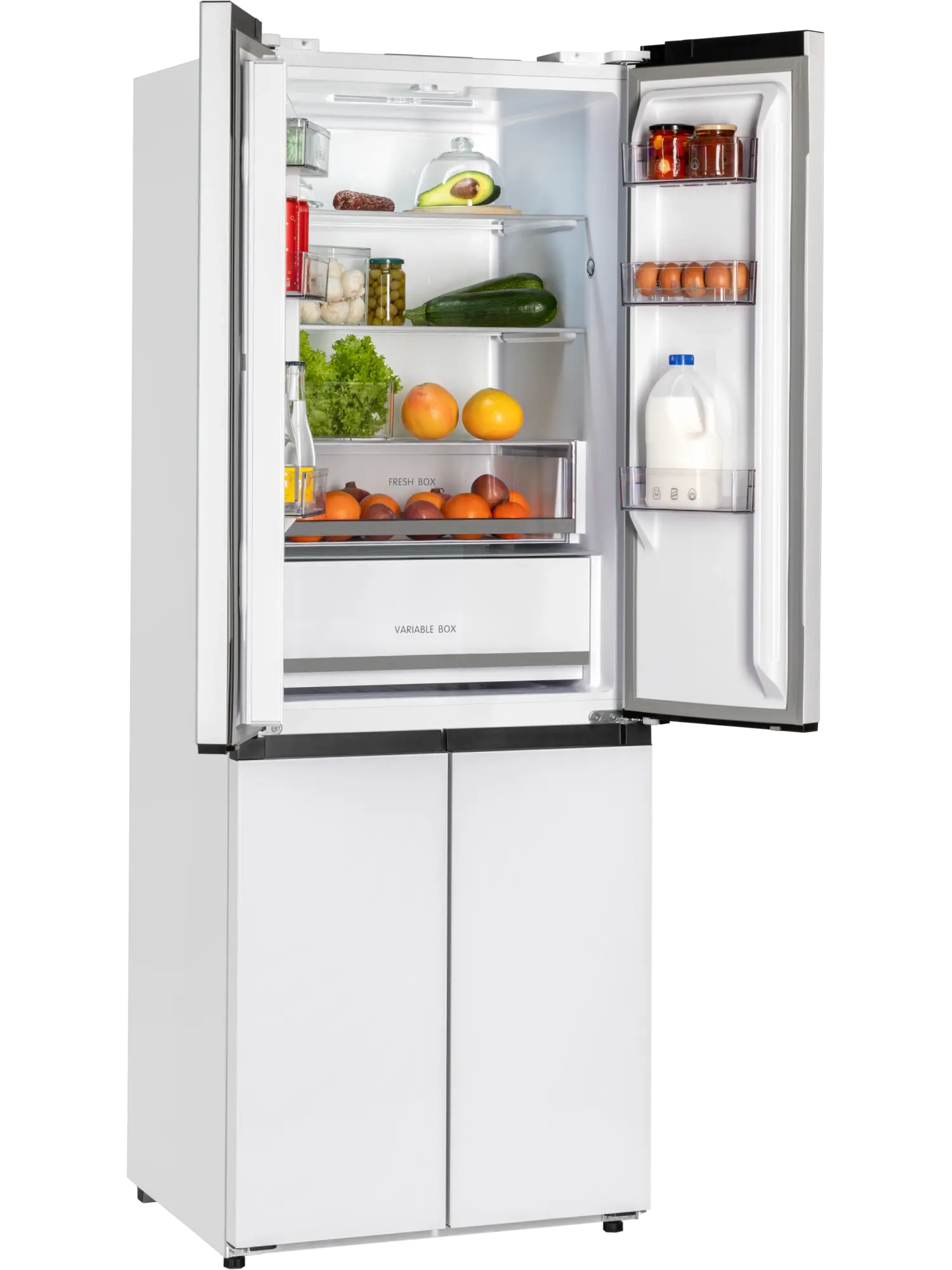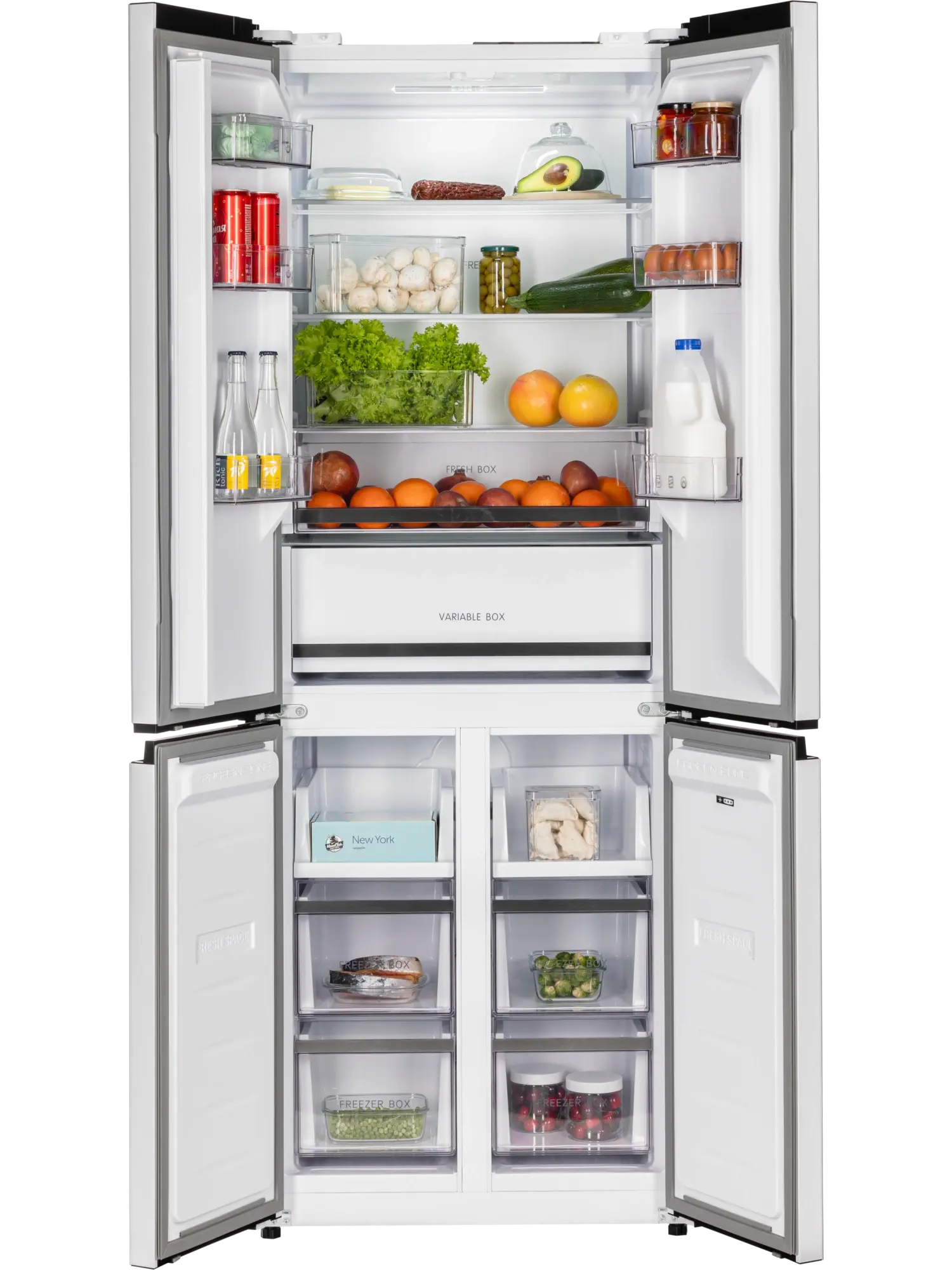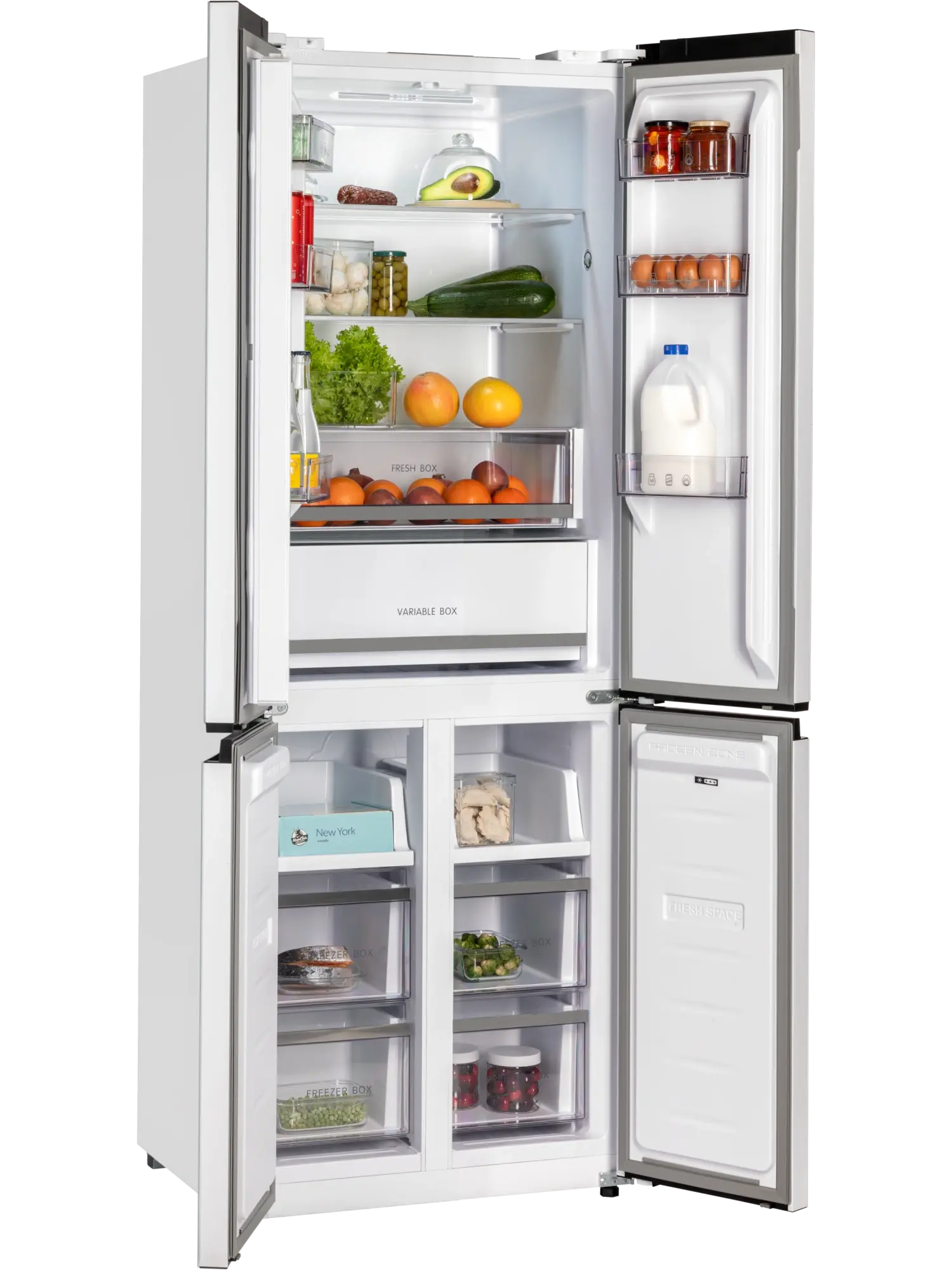 Четырехдверный холодильник Nord RFQ 440NFGW с инверторным компрессором, автоматической системой охлаждения No Frost и электронным управлением — отличное решение для большой семьи. Модель сочетает в себе утонченный дизайн и функциональность. Прибор, выполненный в стильном белом цвете, имеет высоту 192 см и ширину 703 мм. Общий объем 417 литров дает возможность хранить большое количество продуктов.