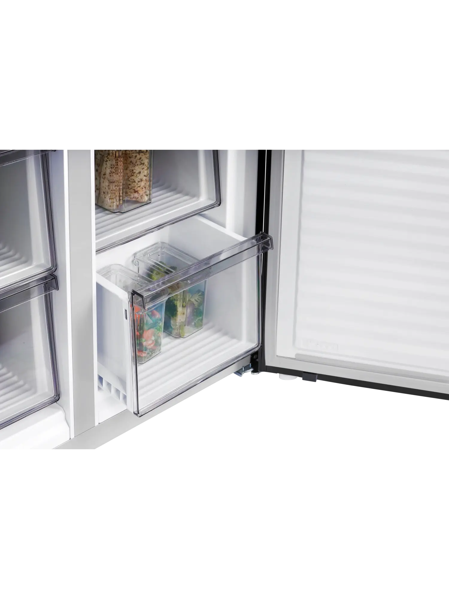 Отдельностоящий холодильник Nord RFQ 450 NFGB Cross Door с общим объемом 451 литр, инверторным компрессором, электронным управлением и индивидуальной зоной охлаждения сочетает в себе высокие технологии и совершенство современного дизайна.