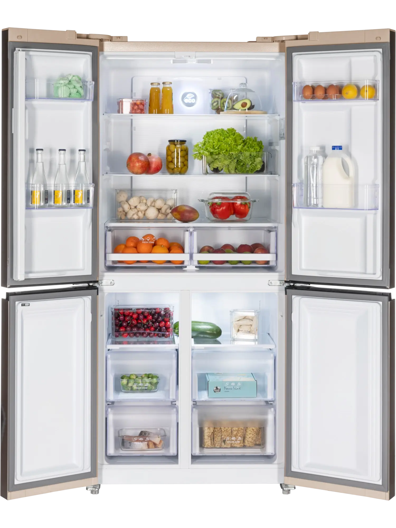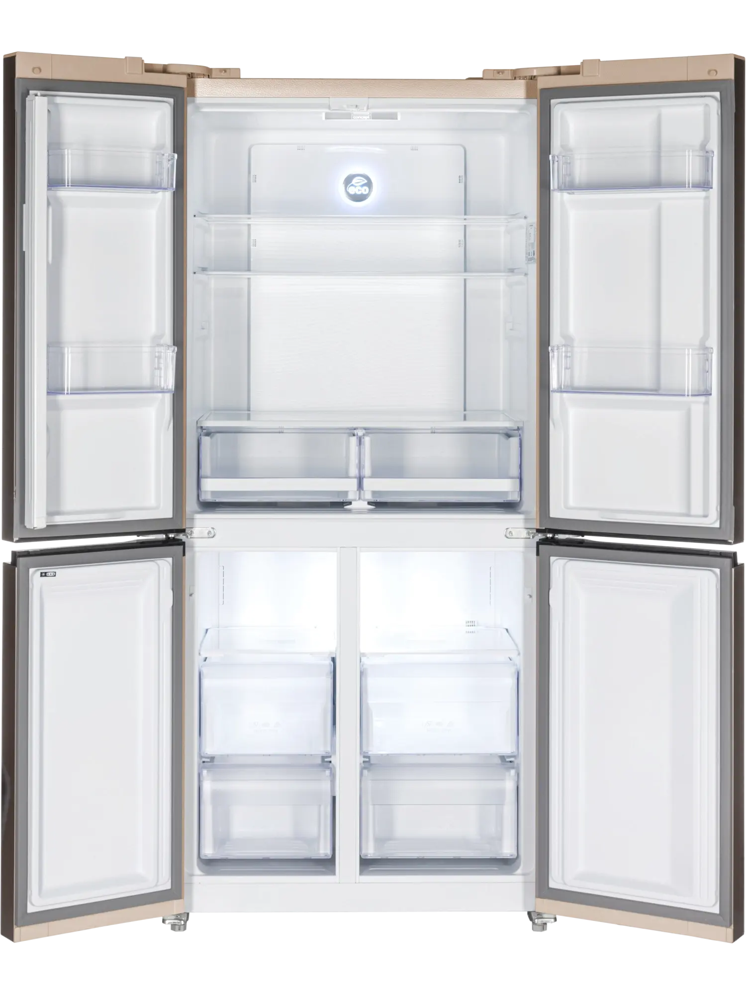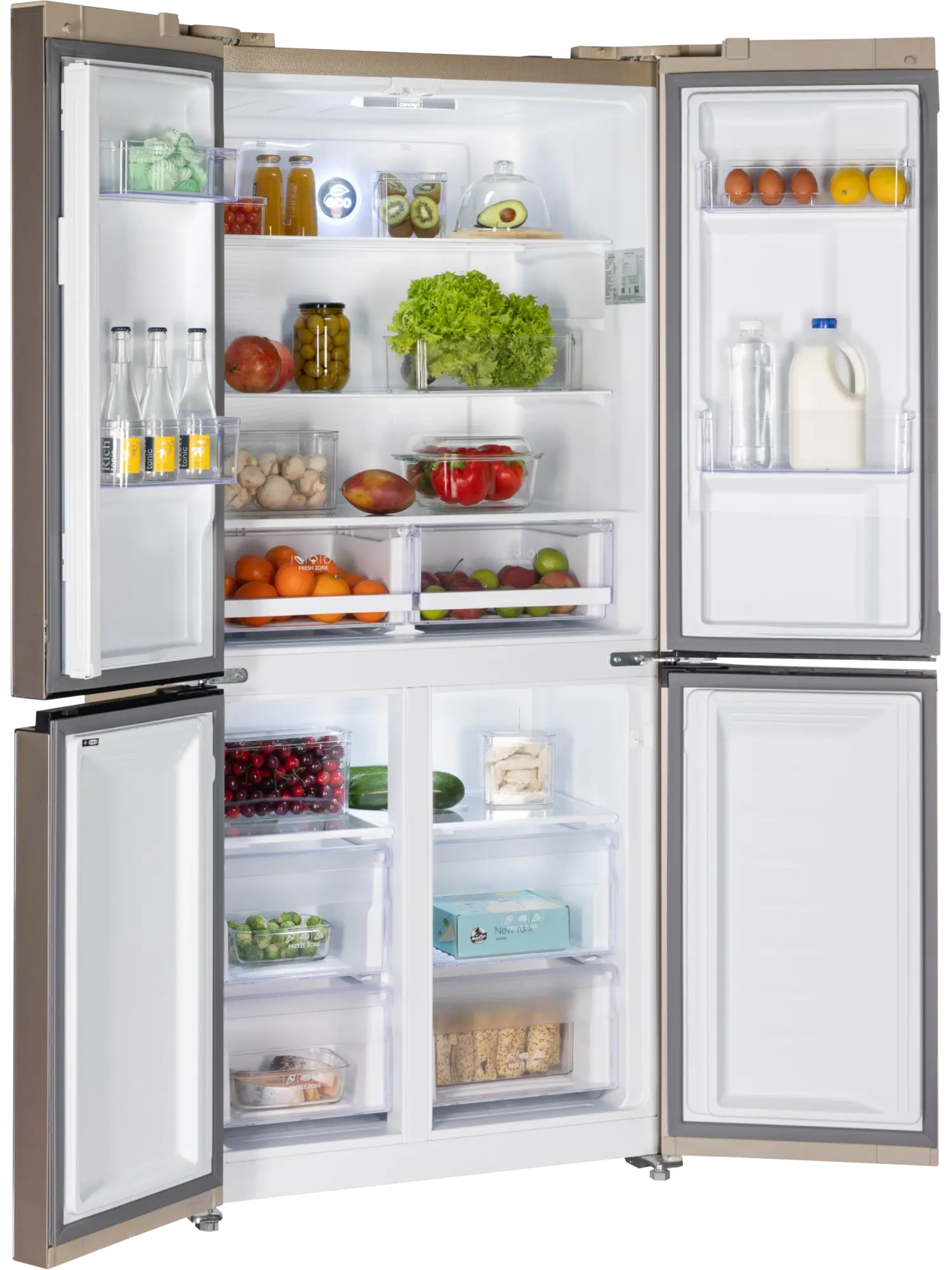 Отдельностоящий четырехдверный холодильник Nord RFQ 500 NFGY выгодно отличается стильным исполнением и большим объемом 482 литра. Вместительный представитель бренда справится с хранением запаса продуктов для большой семьи. Элегантный современный дизайн стеклянного фасада в бежевом цвете с полосками позволит холодильнику занять достойное место в кухонном интерьере квартиры и в столовой зоне загородного дома.