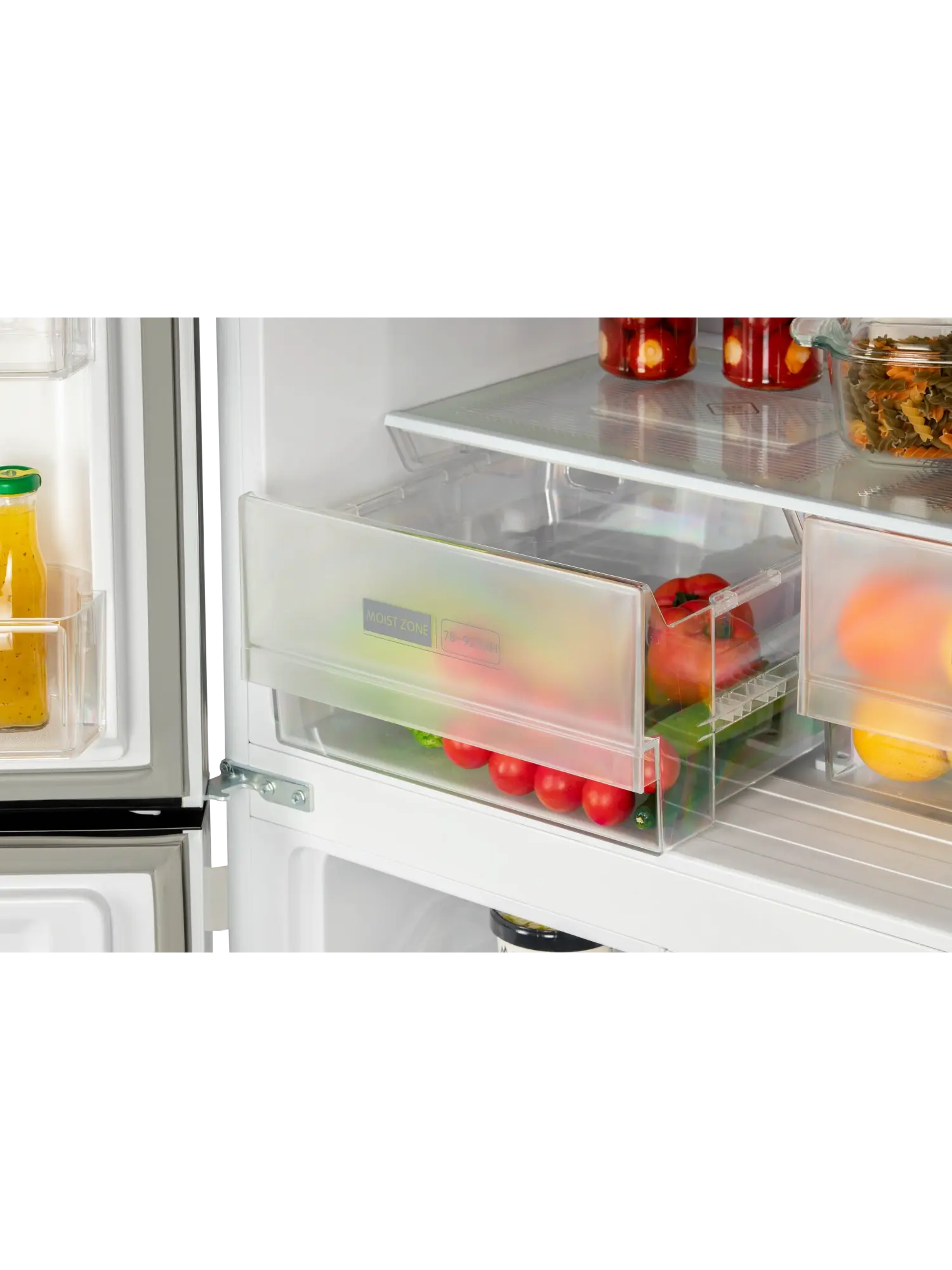4-х дверный холодильник имеет единое пространство верхних полок холодильной камеры, чтобы удобно было размещать габаритные кастрюли и контейнеры. Прочные полки из закаленного стекла можно регулировать по высоте, а ящики в холодильной камере предназначены для хранения овощей и фруктов и оснащены влажной зоной свежести и сухой.