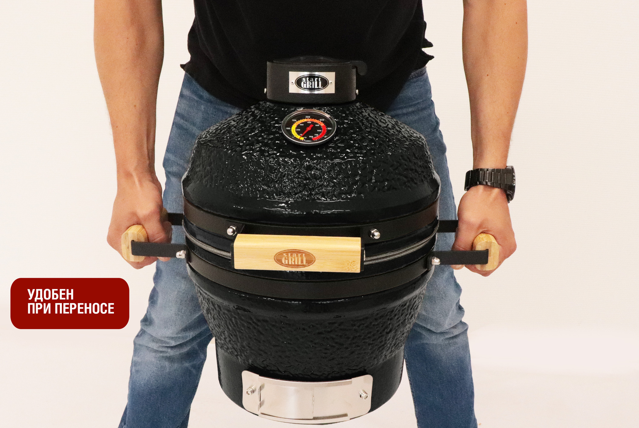 Установленный на крышке гриля высокоточный термометр позволит вам контролировать температуру внутри гриля. Данная модель имеет базовую комплектацию, которая включает одну решетку для приготовления. По желанию можно доукомплектовать гриль дополнительными нужными аксессуарами. При производстве гриля Start Grill используются самые прочные и долговечные материалы, которые не боятся ни коррозии, ни перепадов температур и позволяют сохранить презентабельный вид изделия на многие годы. Керамические грили Start Grill – идеальное соотношение цены, качества и функционала.