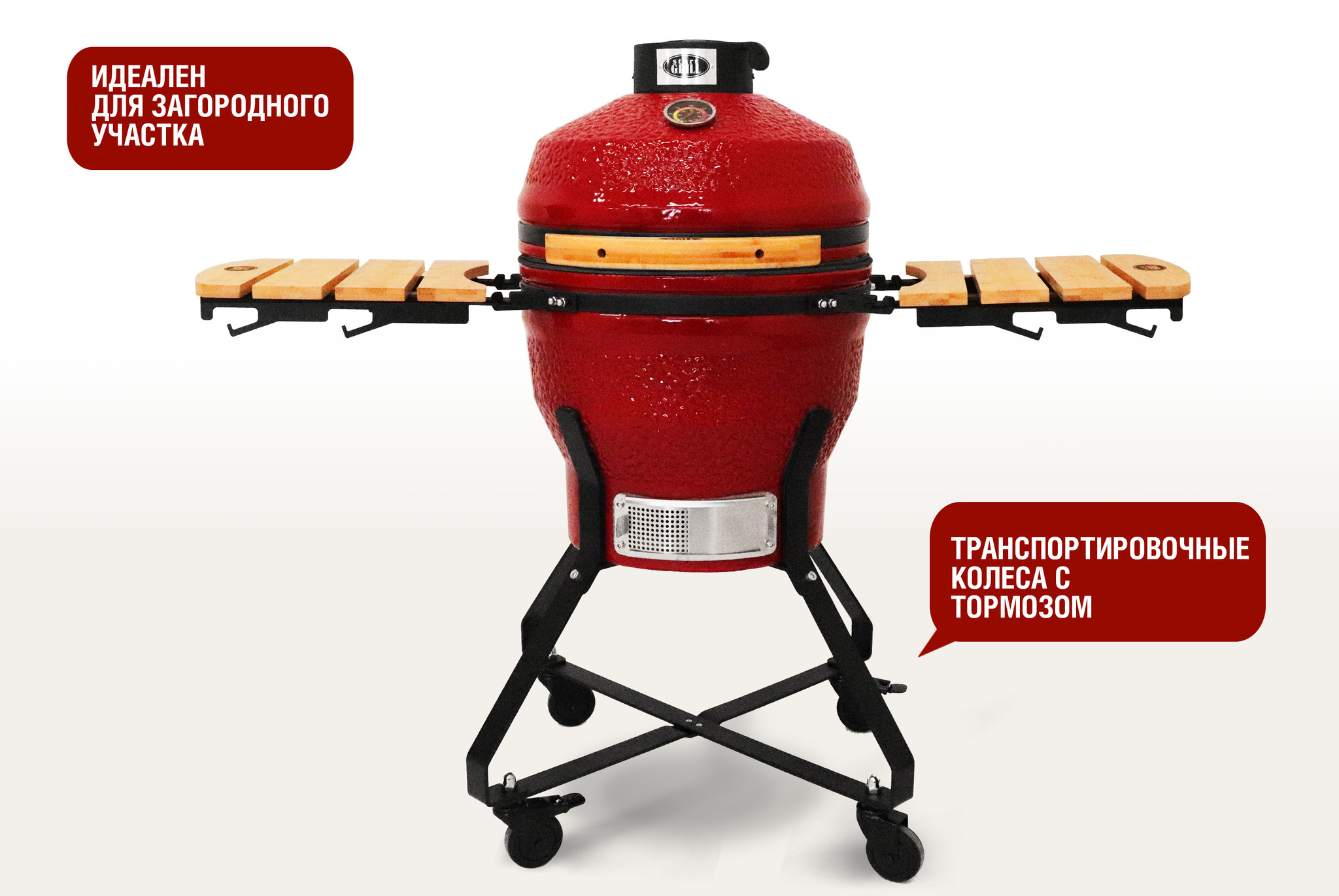 Start Grill SG 18 PRO одновременно сочетает в себе функции гриля, барбекю, мангала, коптильни, духовки, печи для пиццы и тандыра. Гриль выполнен из экологически чистой толстостенной керамики и очень прост в использовании, потребуется совсем немного времени, чтобы подготовить его к работе и начать готовить настоящие кулинарные шедевры. Установленный на крышке гриля высокоточный термометр позволит вам контролировать температуру внутри гриля. Уже входящие в комплект камень для пиццы с держателем, решетка на второй уровень позволят разнообразить свои кулинарные шедевры, а фирменный чехол сохранит гриль в первозданном виде на долгие годы. Керамические грили Start Grill – идеальное соотношение цены, качества и функционала. При производстве гриля Start Grill используются самые прочные и долговечные материалы, которые не боятся ни коррозии, ни перепадов температур и позволяют сохранить презентабельный вид изделия на многие годы. SG 18 PRO прост в уходе. Наличие удобных боковых столиков, расположенных сбоку позволяют держать всё необходимое под рукой, а также облегчают разделку и сервировку продуктов, крючки-держатели помогают кухонной утвари находиться на виду. Четыре всепогодных транспортировочных колеса имеют плавный ход и легко перемещают гриль с одного места на другое. Гриль идеален для открытых площадок, террас, загородного отдыха. Качество и удобство собраны в одном гриле от Start Grill - SG 18 PRO. Перед сборкой гриля ознакомьтесь с инструкцией, которая входит в комплектацию модели, а также следуйте всем правилам эксплуатации.