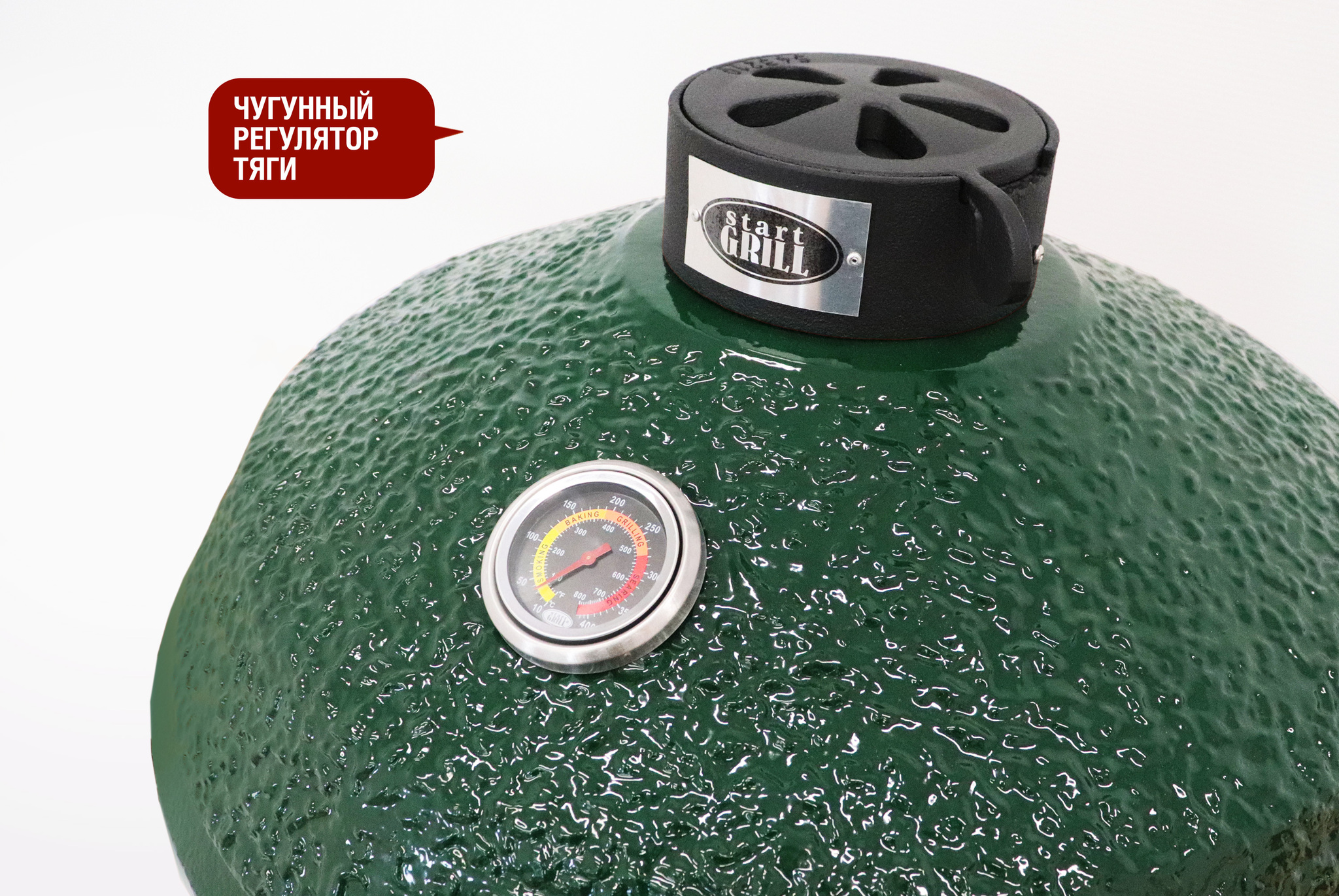 Рекомендуется к приобретению совместно с модулем для гриля со столиками Start Grill. все преимущества классической серии с учетом некоторых особенностей комплектации. Так CFG CHEF PRO не комплектуется стандартной подставкой, в наборе отсутствуют боковые столики и чехол, а стандартный набор хромированных решеток заменен на чугунную решетку со съемной центральной вставкой. Start Grill SG 24 CFG CHEF PRO имеет в своем арсенале удобную и эффективную систему подачи щепы CFG. Эта система представляет собой открывающийся отсек в корпусе гриля, направляющий лоток и толкатель. Теперь нет необходимости убирать продукты с решетки для приготовления, снимать саму решетку, чтобы загрузить дополнительную порцию щепы. Система CFG позволяет добавить щепу за считанные секунды, не открывая крышки гриля. Для удобства быстрой и качественой очистки от золы и пепла предусмотрен съемный золосборник. С появлением версии CFG CHEF PRO появилась опция по выбору подходящей комплектации для каждой конкретной сферы применения. Данная модель гриля подойдет многим, но акцент делается для профессионалов. Имея большой размер, устройство для подачи щепы, улучшенный состав керамики и чугунную решетку в базе этот гриль станет незаменимым инструментом для кейтеринга, баров, ресторанов, BBQ зон.