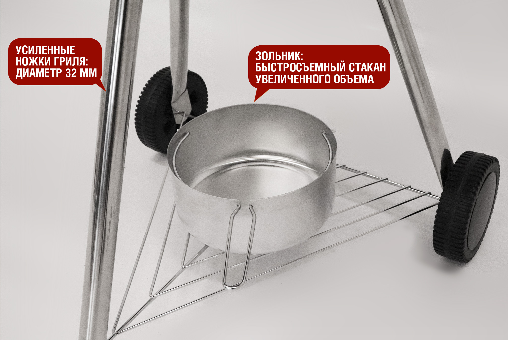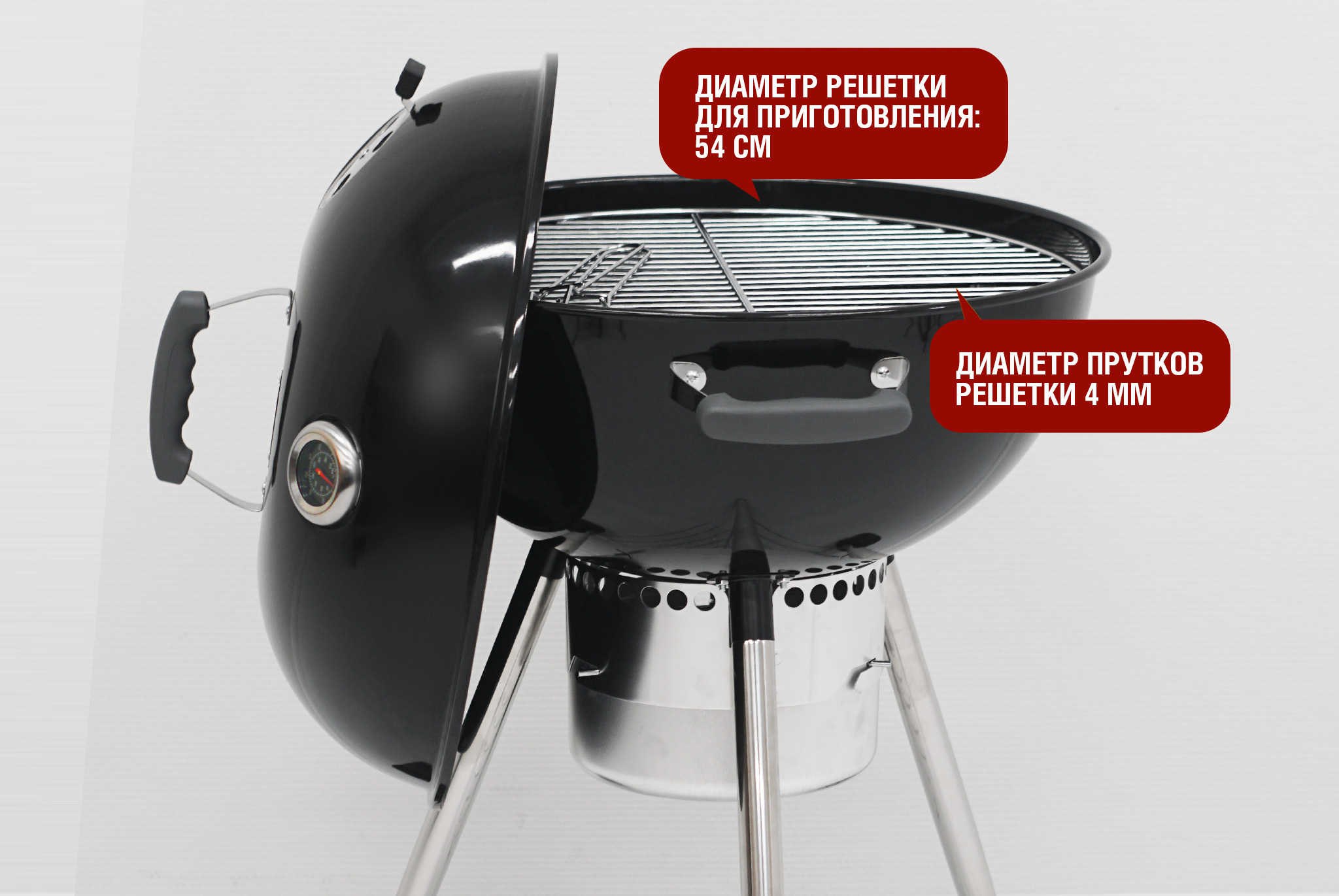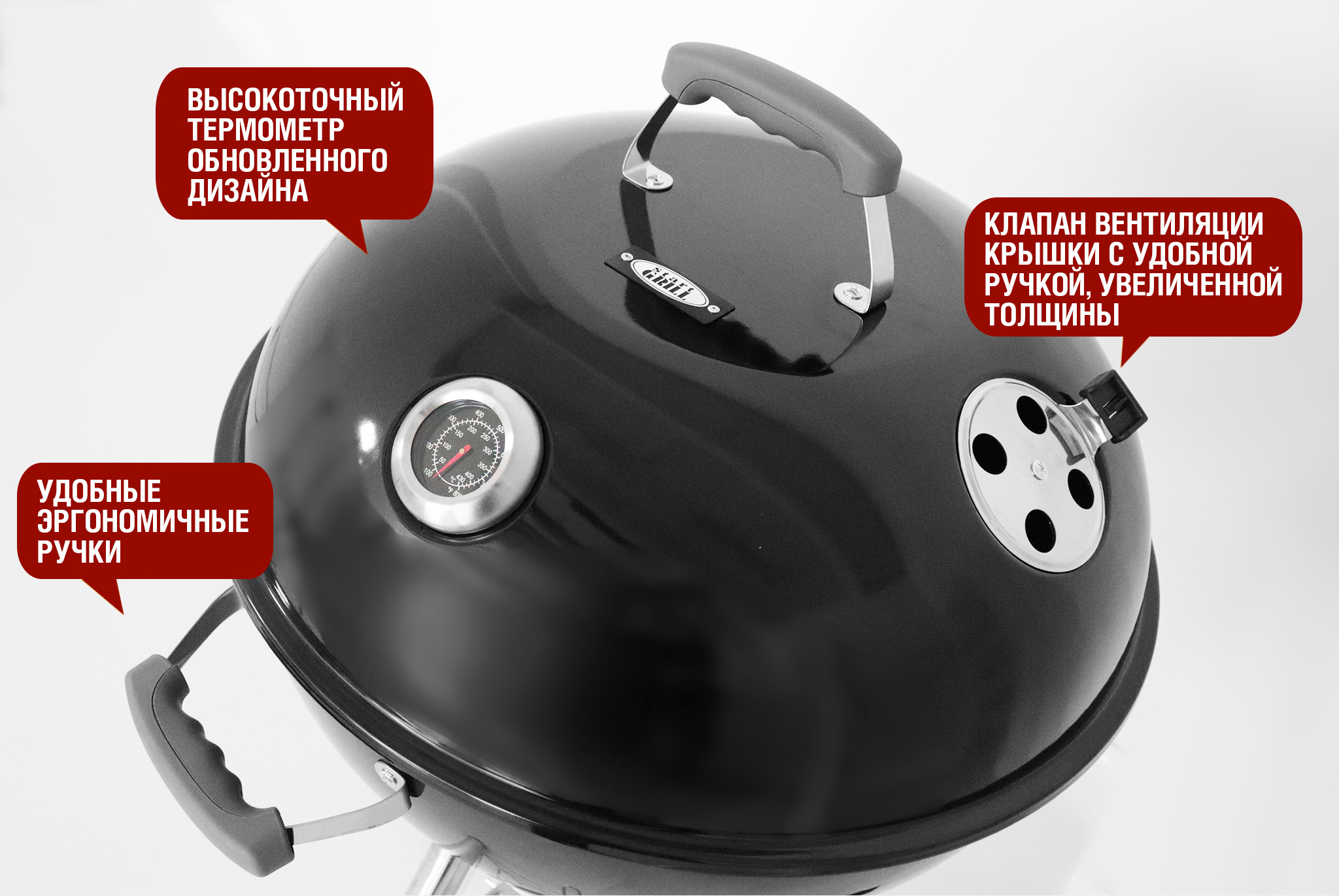Большой стационарный круглый угольный гриль TEMPER подойдет для большой компании. Данная модель гриля сочетает в себе большое количество преимуществ. Особенностью данной модели является то, что стенки корпуса и крышки гриля имеют увеличенную толщину. Верхний вентиляционный клапан имеет удобную ручку. Высокоточный термометр, встроенный в крышку гриля, позволяет без труда контролировать температуру в процессе приготовления. Быстросъёмный зольник увеличенного объема обеспечивает сокращение интервалов между чистками. Гриль оснащен монолитными устойчивыми опорами колосника и решетками для приготовления. В комплекте поставки предусмотрены два захвата решетки для её быстрого и безопасного снятия. Данная модель также оснащена большими транспортировочными колесами для удобства перемещения, а также удобной нишей для хранения различных аксессуаров. Все эти преимущества позволят превратить процесс готовки в удовольствие.