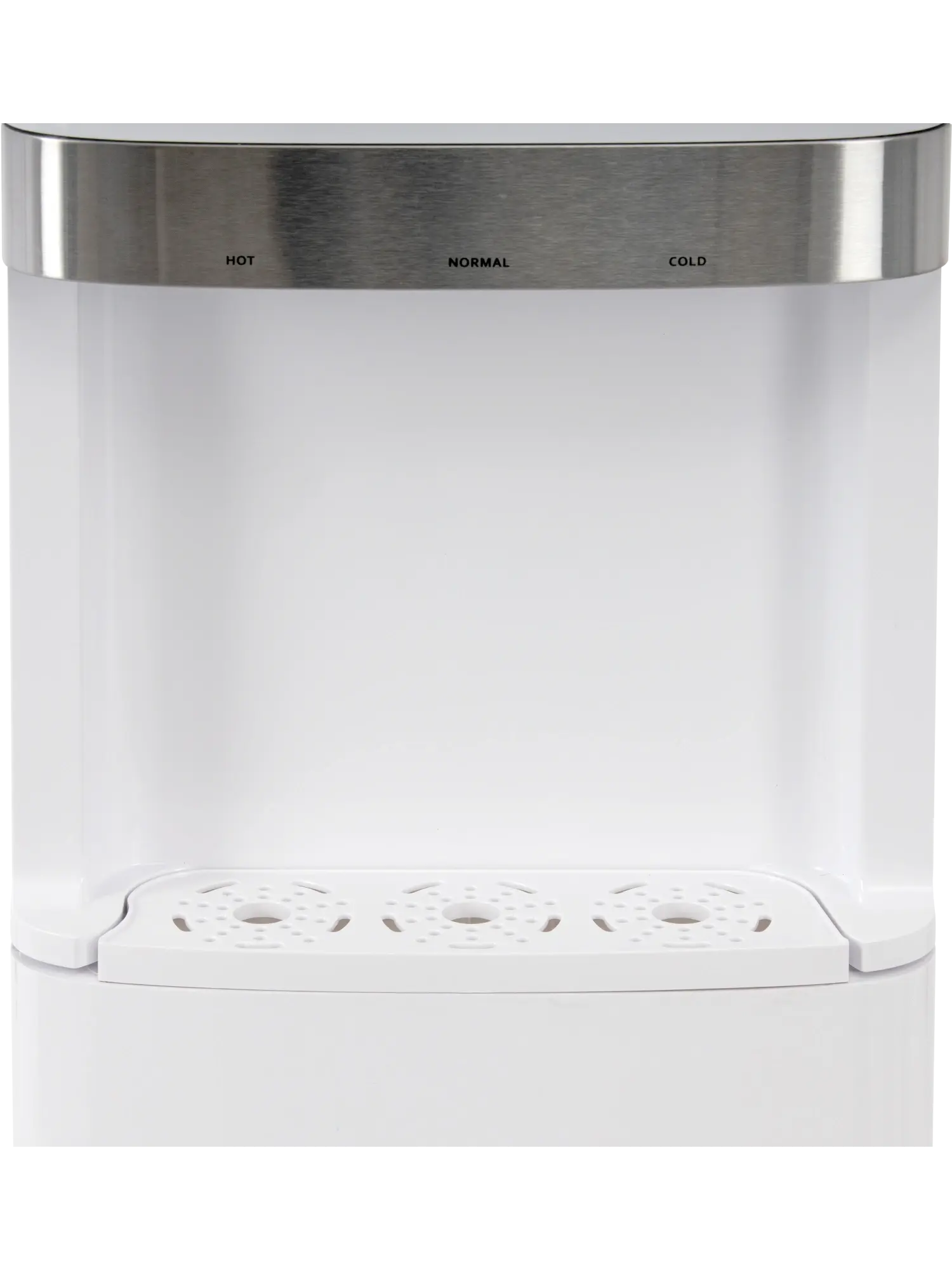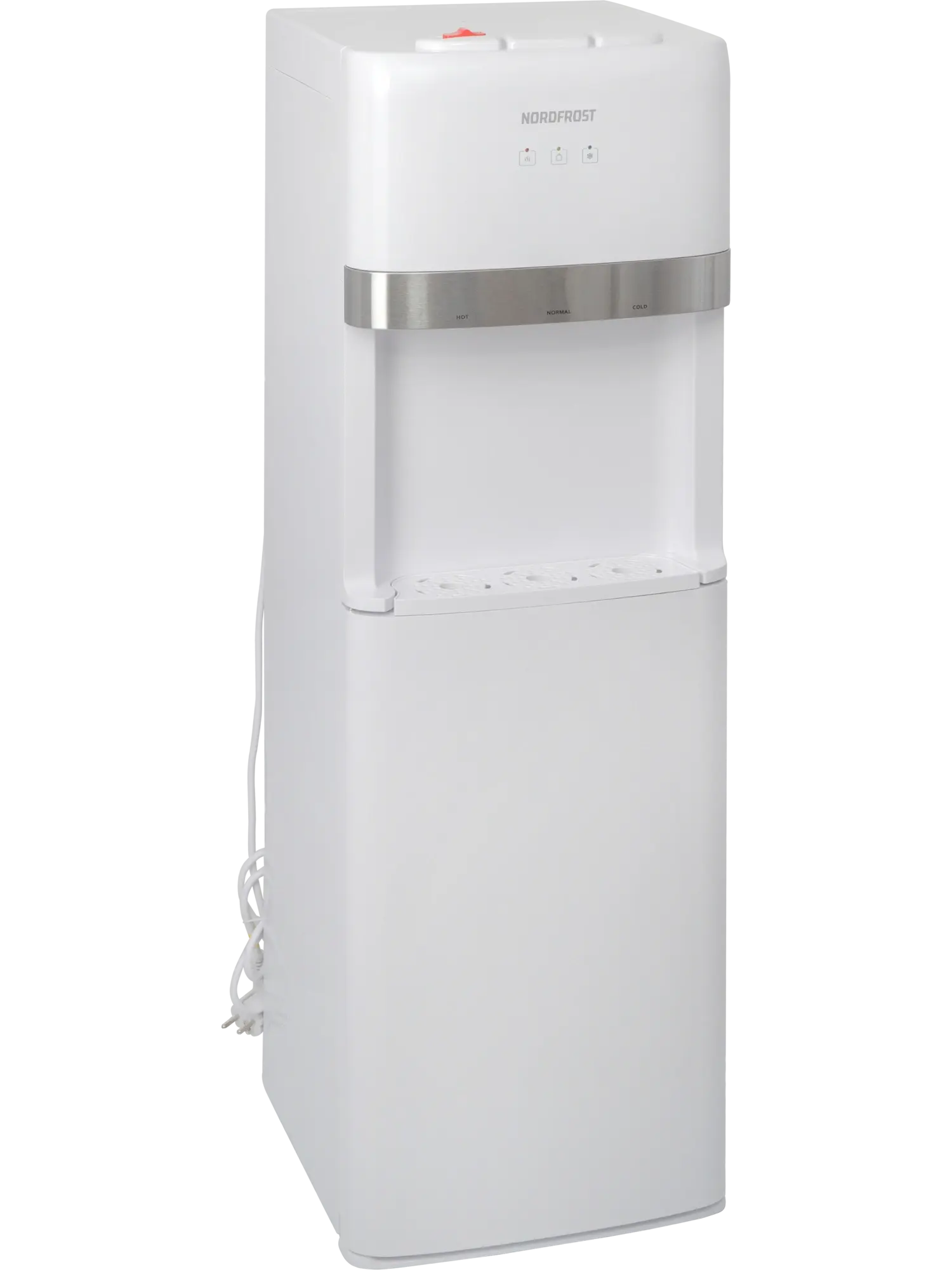 Напольный кулер с компрессорным охлаждением, нижней загрузкой бутыли и функцией нагрева.