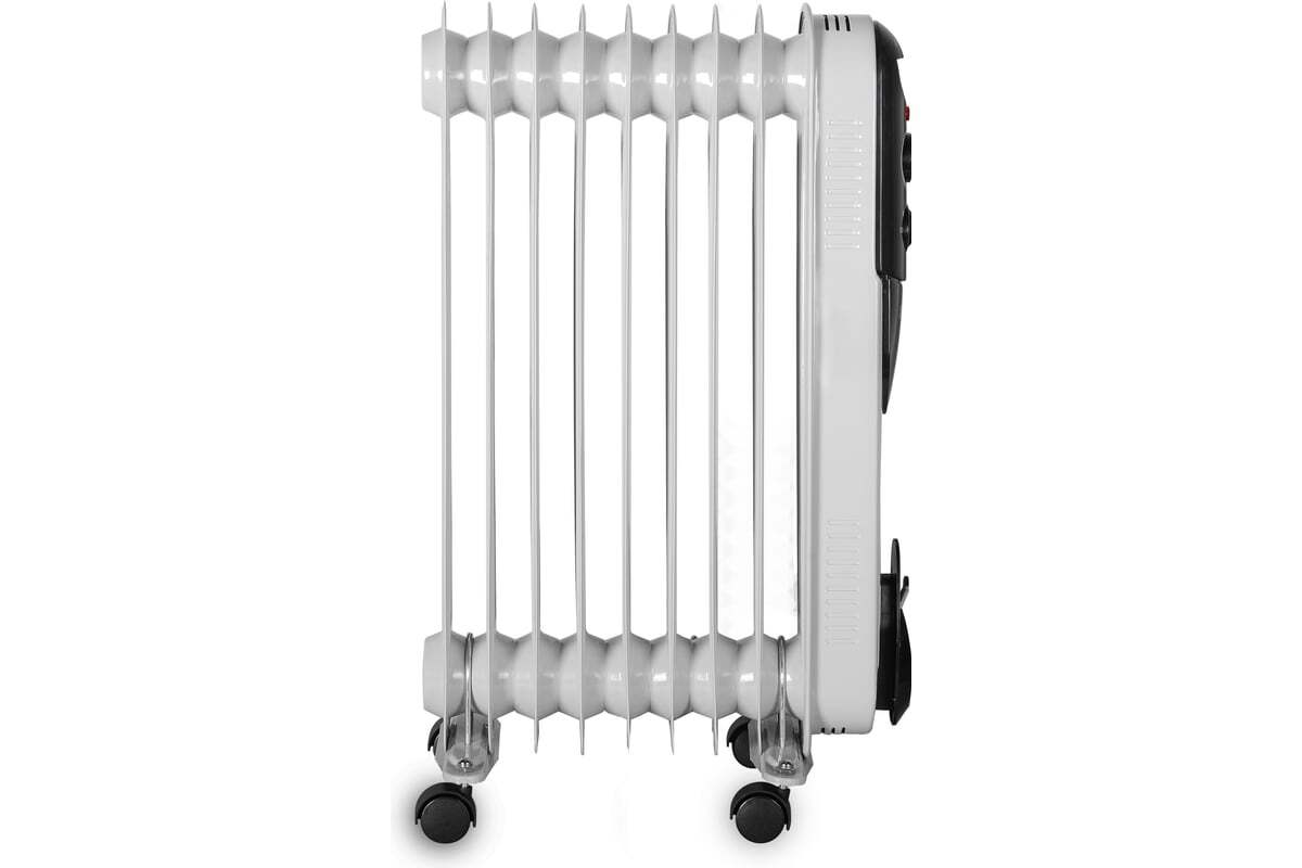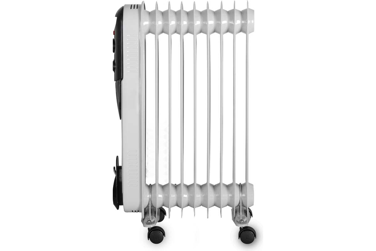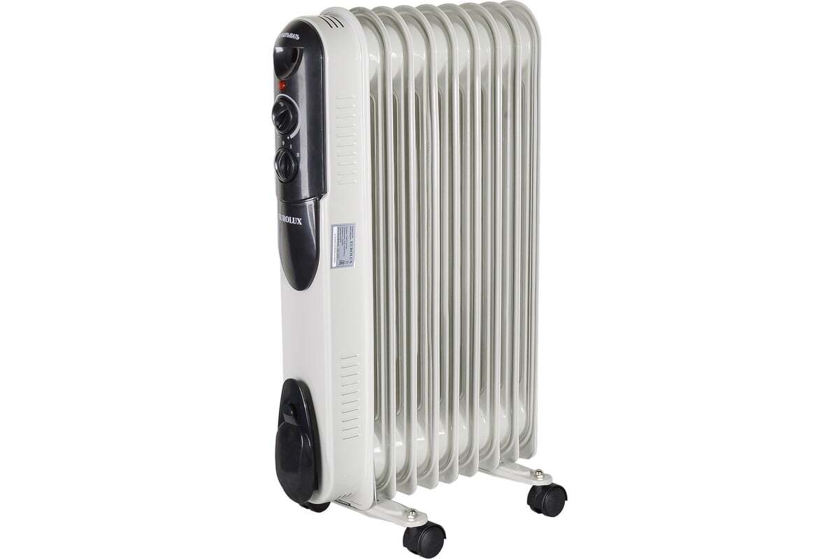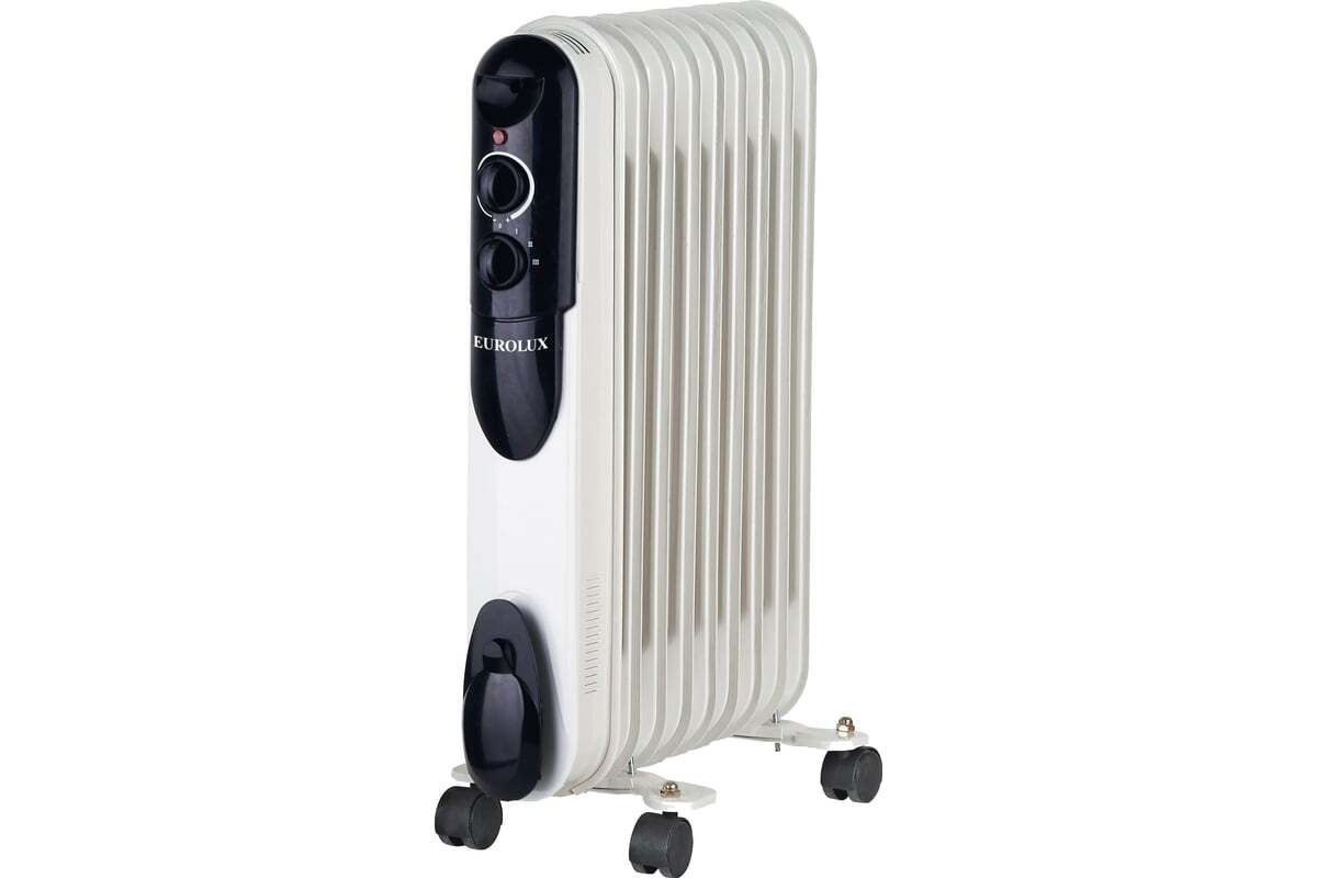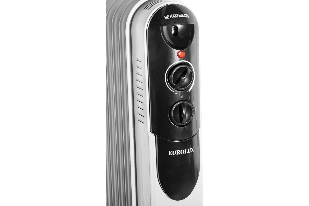 Масляный радиатор Eurolux ОМПТ-EU-9H – это высокоэффективный отопительный прибор. Главная его конструктивная особенность заключается в том, что нагревательный элемент подогревает масло. Благодаря этому, корпус не нагревается до больших температур, поэтому не выжигает кислород и не сушит воздух. Поскольку обогреватель комплектуется нагревательным элементом мощностью 2000 Вт, подходит для помещений площадью до 25 м². Благодаря высокой мощности, прибор позволяет за короткий промежуток времени повысить температуру воздуха до необходимых значений. Масляный радиатор на 9 секций имеет 3 режима работы: 800/1200/2000 Вт. Заданную температуру он поддерживает автоматически за счет встроенного термостата.
