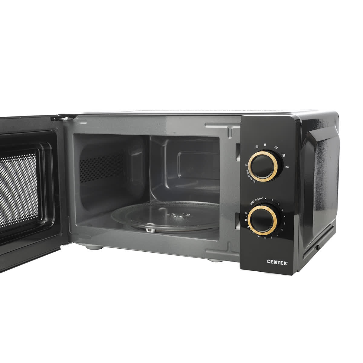 Удобная микроволновая печь Centek – незаменимый помощник на любой современной кухне. Прибор выполняет задачи по приготовлению##подогреву и размораживанию продуктов. Важно отметить##что внутреннее покрытие печи не впитывает запахи и не склонно к загрязнению##ржавчине или расслоению. СВЧ-печь имеет прочную конструкцию##соответствующую официальным стандартам безопасности.
