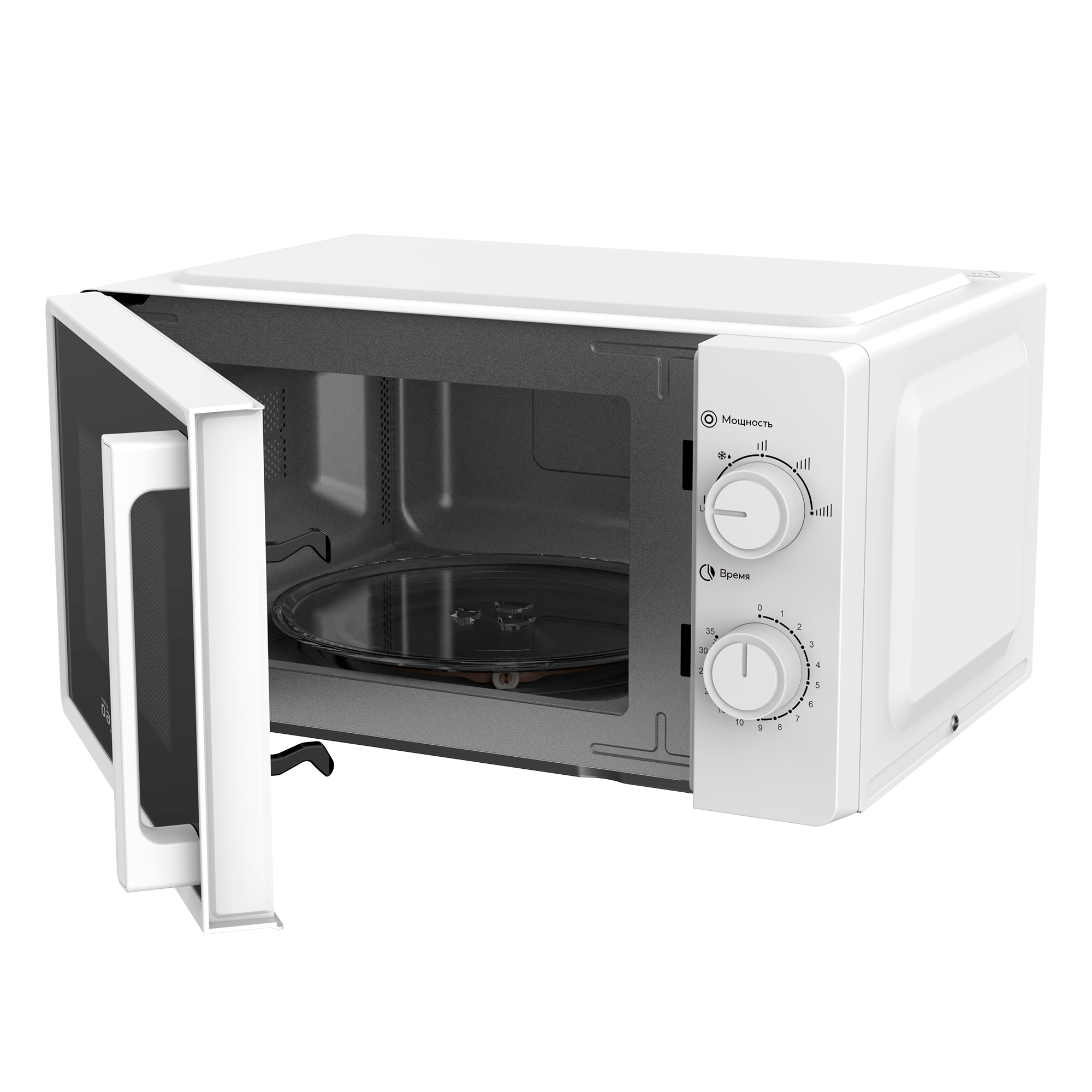 Механическое управление позволяет в одно движение выбрать время работы и включить устройство. Функция разморозки будет полезна, если нужно быстро довести продукт до пригодного для приготовления состояния. Строгие черты идеально впишутся в современный дизайн, будь то кухня или рабочий кабинет.