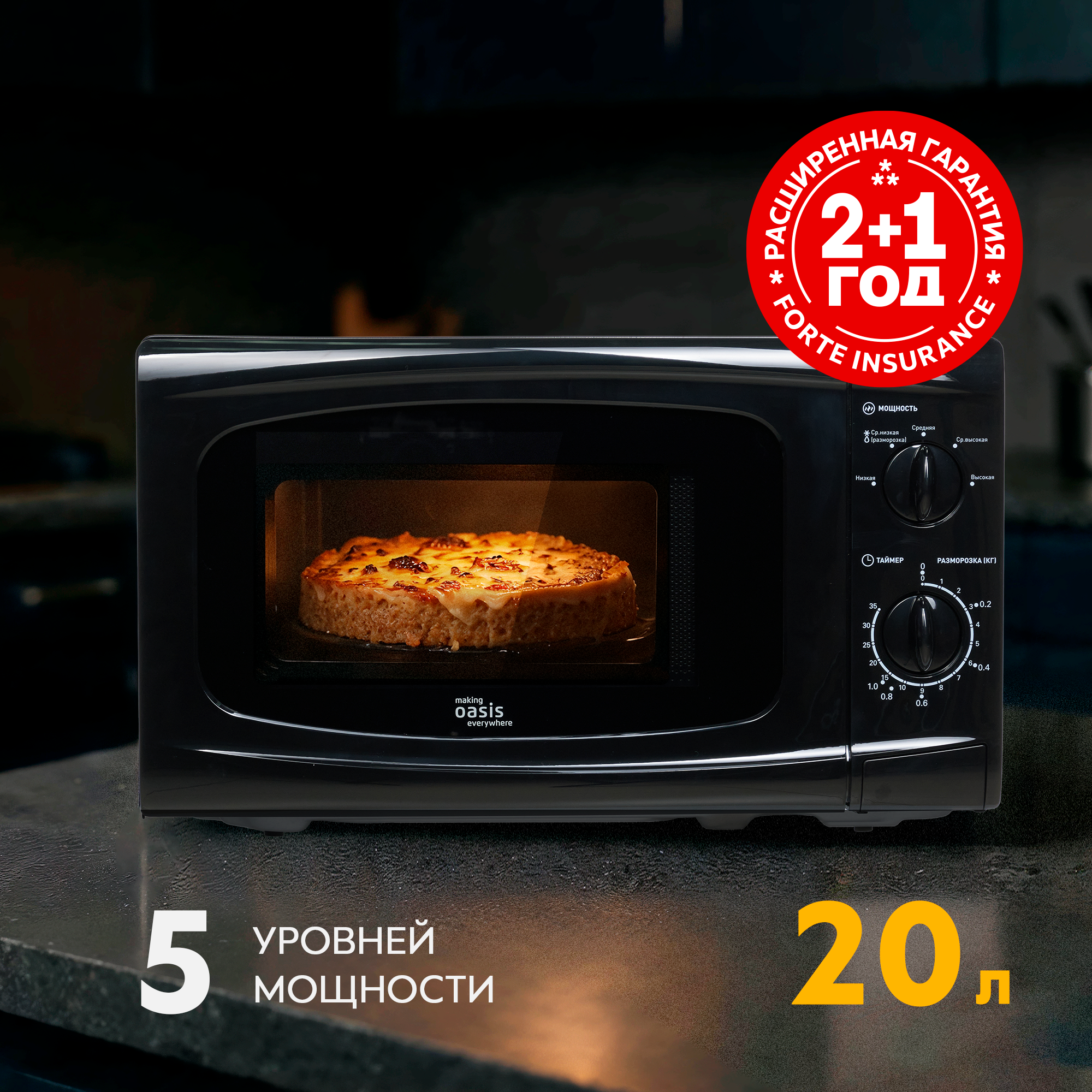 Микроволновая печь making Oasis everywhere – устройство для тех, кому важно поддерживать высокий темп жизни. Большая мощность гарантирует быстрый разогрев еды. Также в микроволновой печи можно готовить простые блюда, что экономит время.