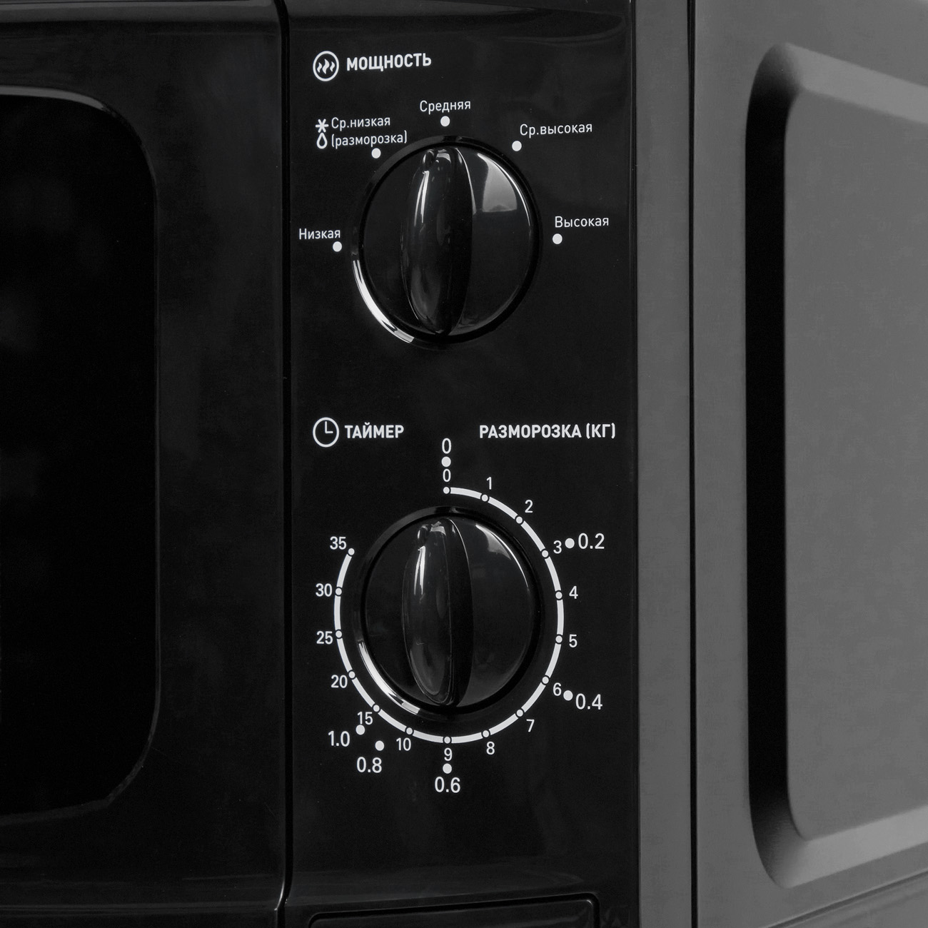 Механическое управление позволяет в одно движение выбрать время работы и включить устройство. Функция разморозки будет полезна, если нужно быстро довести продукт до пригодного для приготовления состояния. Строгие черты идеально впишутся в современный дизайн, будь то кухня или рабочий кабинет.