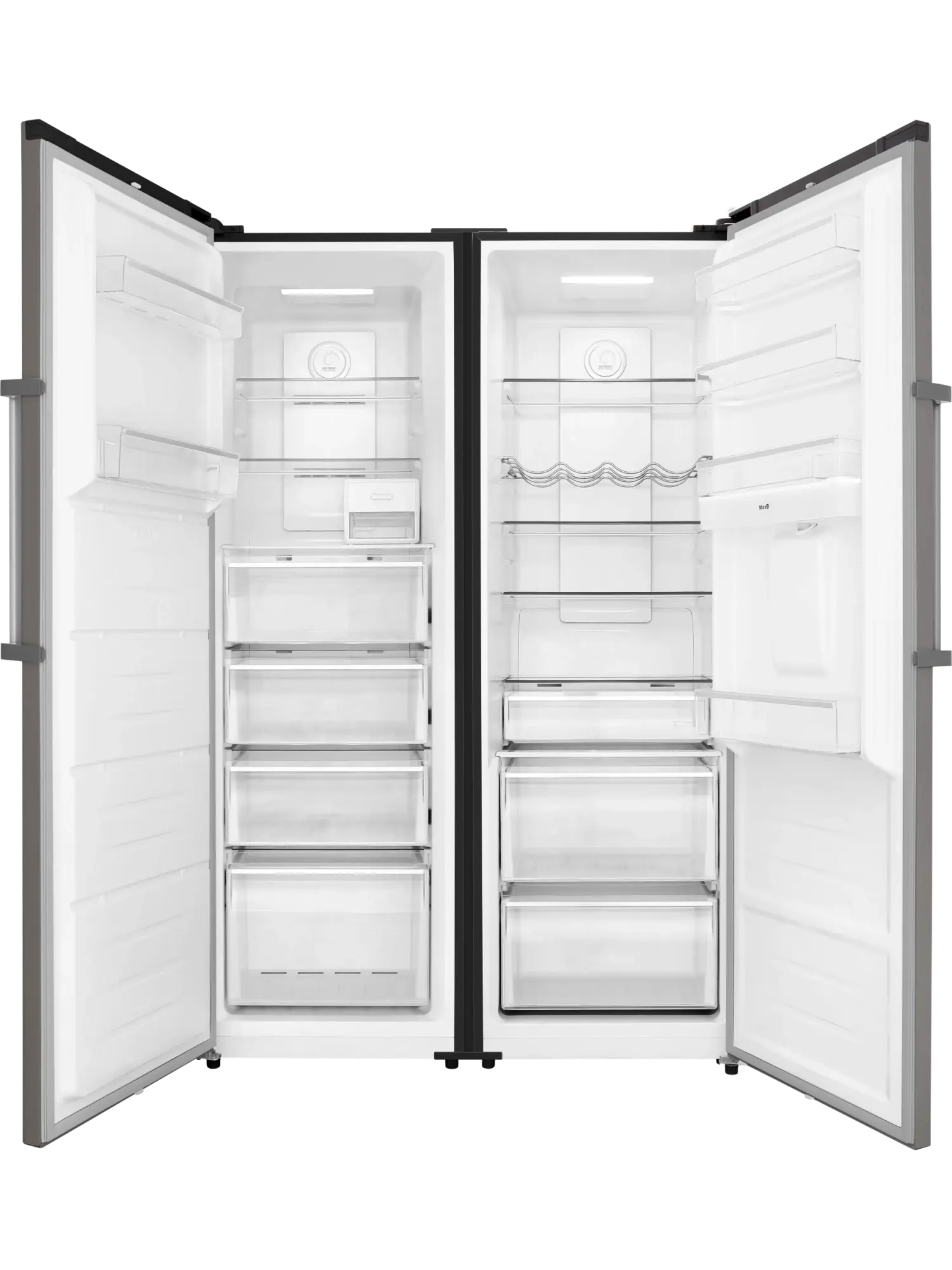 Холодильник Side-by-side имеет общий объем 688 литров. Главная особенность модели — встроенный диспенсер для воды со съемным фильтром, который обеспечивает мгновенный доступ к охлажденной воде в любое время без открывания двери. А встроенный поворотный льдогенератор внутри морозильной камеры выдает кубики льда с возможностью хранения их в контейнере, чтобы в любой момент можно было освежиться напитками с готовым льдом.
