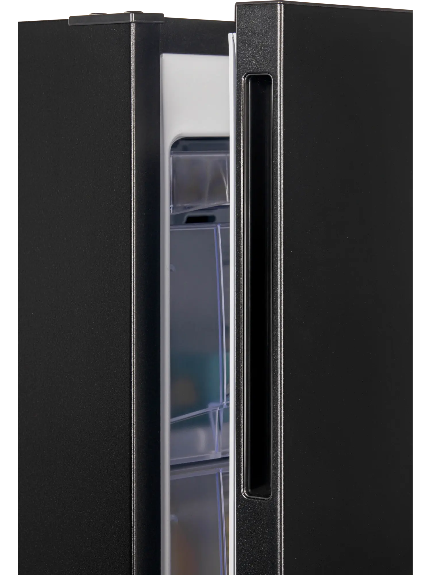 Морозильник черного матового цвета с интегрированной ручкой и продуманным внутренним пространством станет стильным и технологичным акцентом на вашей кухне. Высота устройства 93 см. Для комфортного открытия и установки морозильника в удобном месте — дверь можно перенавесить с правой стороны на левую.