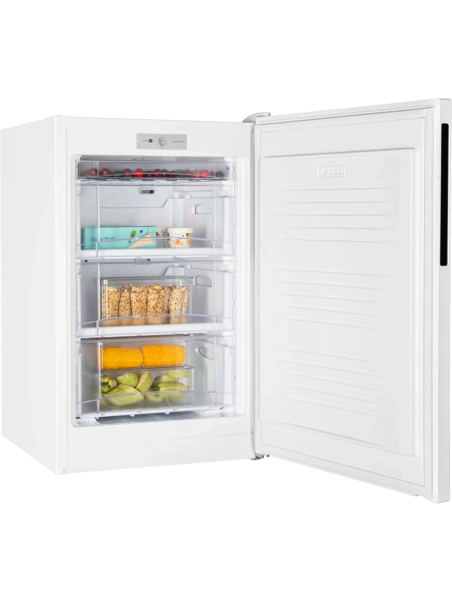Устройство обеспечивает высокую производительность с мощностью замораживания до 8 кг в сутки. В случае отключения электричества, морозильник может автономно сохранять температуру до 10 часов. Панель управления модели расположена внутри камеры. Откорректировать температуру позволит механический термостат с 3 режимами заморозки, где «1» — самая высокая температура, а «3» — максимально низкая -18°С.