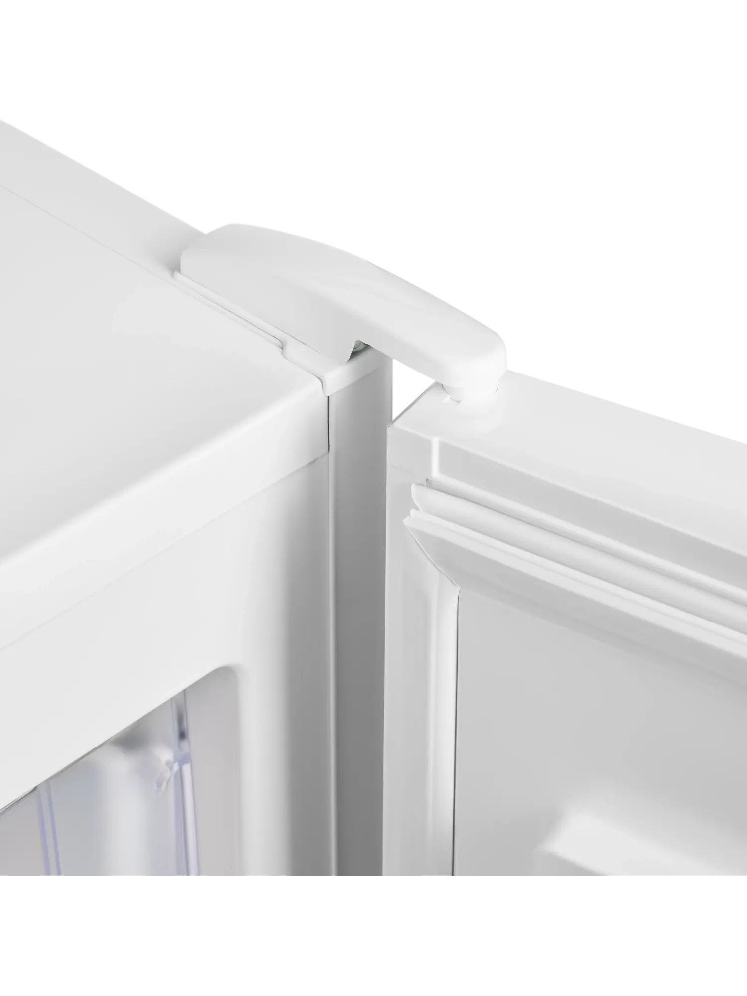 Морозильник белого цвета с черной интегрированной ручкой и продуманным внутренним пространством станет стильным и технологичным акцентом на вашей кухне. Высота устройства 109 см. Для комфортного открытия и установки морозильника в удобном месте — дверь можно перенавесить с правой стороны на левую.