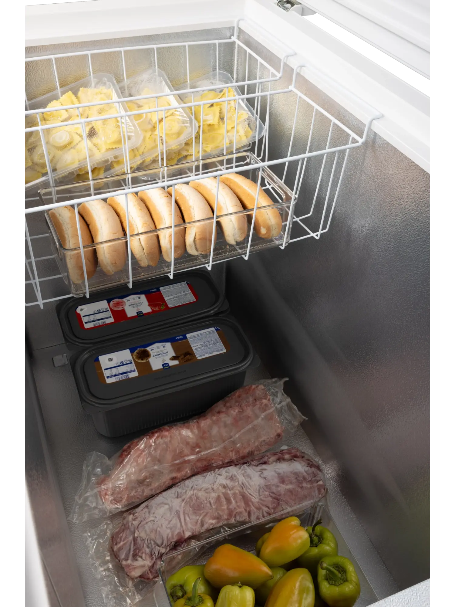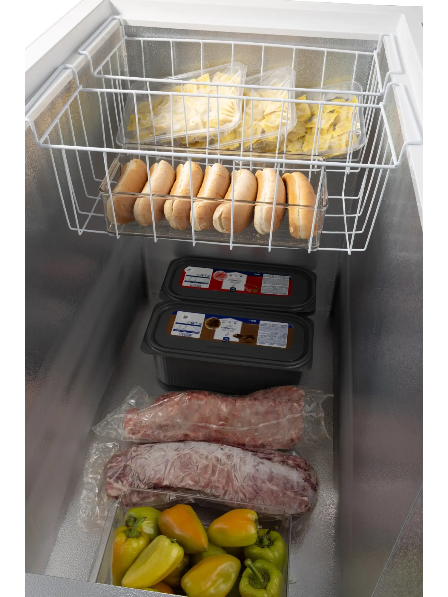 Nord CN 410 — вместительный и практичный морозильный ларь с общим объёмом 370 литров, подходящий как для дома или дачи, так и для коммерческого использования. Модель сочетает высокую производительность, удобную конструкцию и надёжное сохранение холода. Температурный диапазон от -12 до -24 °С обеспечивает качественную заморозку продуктов, включая мясо, рыбу, овощи, фрукты и полуфабрикаты. Также предусмотрен режим холодильника с температурой до +5 °С, что делает модель универсальной. Мощность заморозки составляет до 13,5 кг в сутки, что позволяет эффективно заготовить большие объёмы продуктов. Встроенная система теплоизоляции обеспечивает автономное сохранение холода до 22 часов, что особенно важно при перебоях с электропитанием. Утопленные ручки, съёмный уплотнитель и две подвесные корзины обеспечивают удобство в использовании и организации внутреннего пространства. Габариты (ШхГхВ): 1125×610×835 мм Гарантия: 2 года
