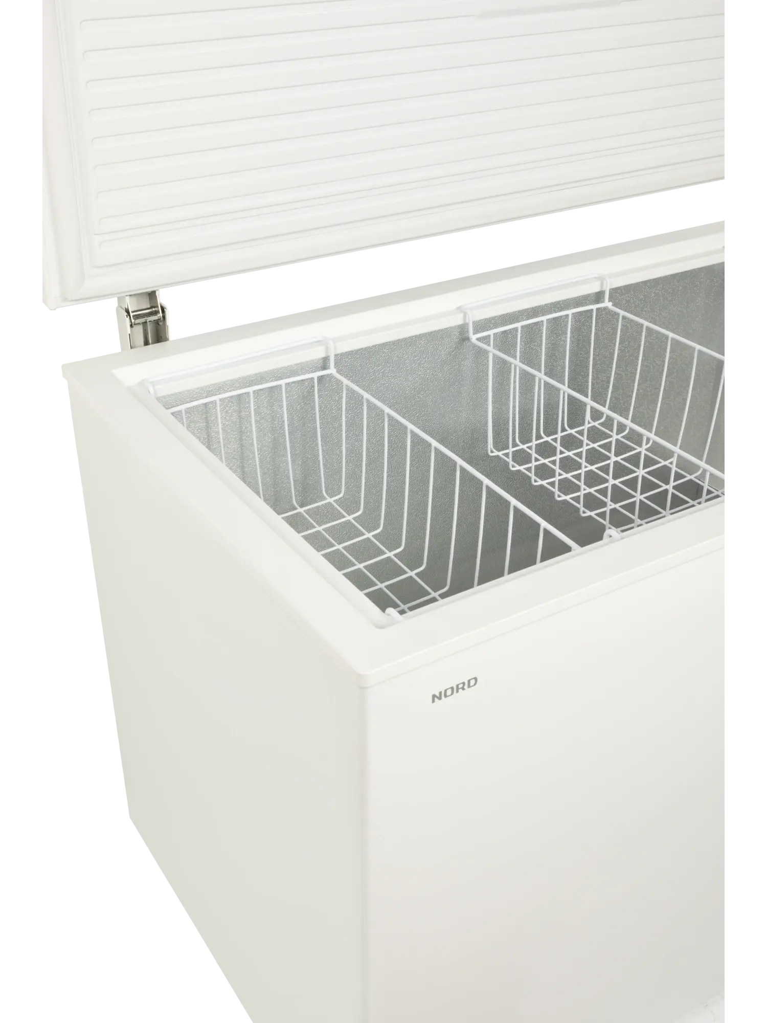 Nord CN 500 — это вместительный морозильный ларь, рассчитанный на хранение крупных объёмов продуктов в домашних и коммерческих условиях. Модель отлично подходит для частных домов, магазинов, кафе, дач и ферм, где важна надёжность и простота в эксплуатации. Полезный объём камеры составляет 420 литров, что позволяет размещать как крупные упаковки, так и мелкие замороженные продукты. Для удобной организации пространства предусмотрены три подвесные корзины, которые позволяют сортировать содержимое и быстро находить необходимое. Работа морозильника регулируется вручную — с помощью механического термостата, что позволяет точно выставлять нужную температуру. Встроенный режим суперзаморозки позволяет быстро охладить свежие продукты и сохранить их вкусовые и питательные свойства. Даже в случае отключения электричества содержимое ларя останется защищённым: автономное сохранение холода составляет до 38 часов, что особенно важно при загрузке большим объёмом продукции. Дополнительное преимущество — функция “зимняя защита”, обеспечивающая стабильную работу при температуре окружающей среды до -15 °C. Это позволяет устанавливать морозильник в неотапливаемых помещениях: на веранде, в гараже или холодной кладовой. Для удобного перемещения габаритной и тяжёлой техники в конструкции предусмотрены колесики, упрощающие установку и уход. Преимущества Nord CN 500: полезный объём — 420 л режим суперзаморозки автономное сохранение холода до 38 часов регулировка температуры с помощью механического термостата 3 подвесные корзины — для удобной сортировки продуктов 2 ножки и 2 колесика — для простого перемещения функция "зимняя защита" — стабильная работа до -15 °C класс энергопотребления: A Nord CN 500 — надёжный морозильный ларь для хранения больших запасов, который одинаково уверенно работает и в доме, и в неотапливаемом помещении.