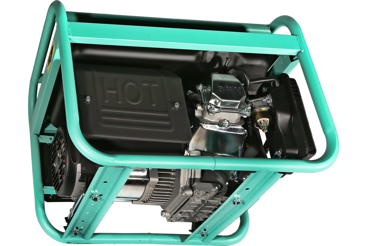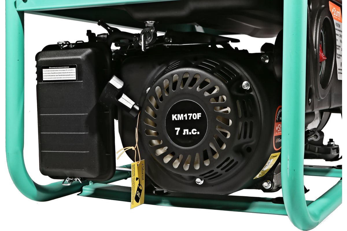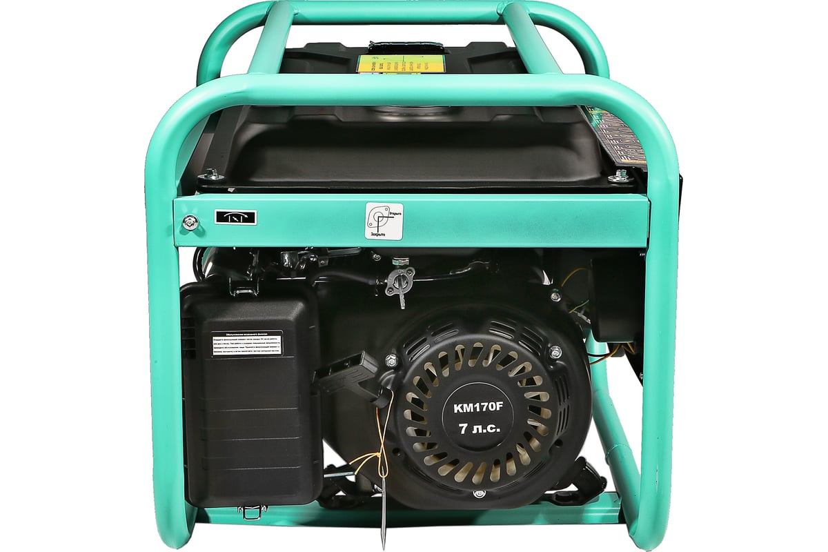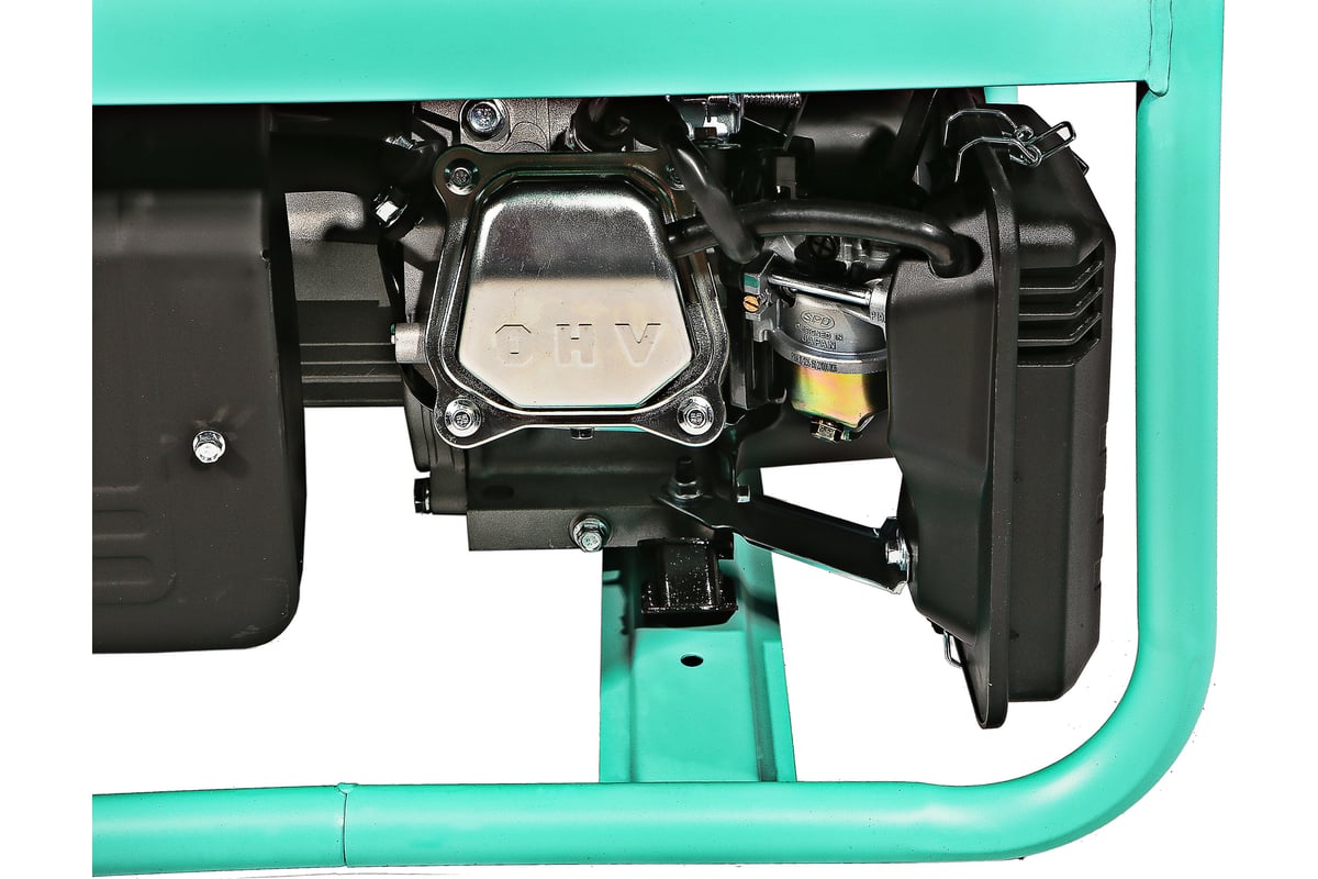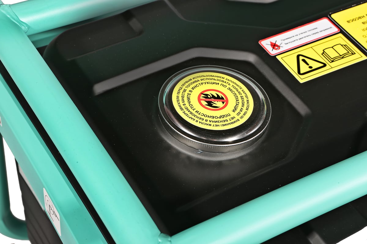 Наличие 2 евро розеток позволяет подключать сразу несколько потребителей. Выход на постоянный ток позволяет заряжать аккумуляторы и питать любые устройства требующие напряжения 12В (5А). Защита от низкого уровня масла и защита от перегрузки останавливают двигатель предотвращая его выход из строя при внештатных ситуациях. Двигатель разработан для работы на бензине АИ-92.