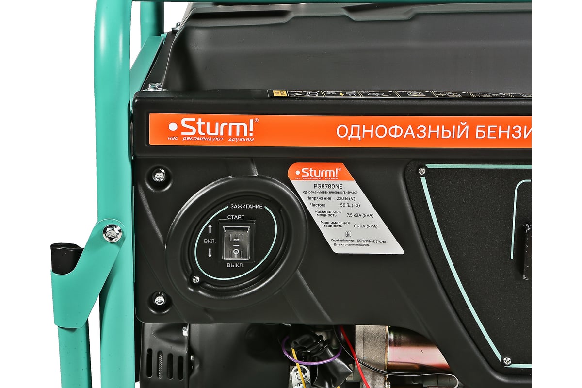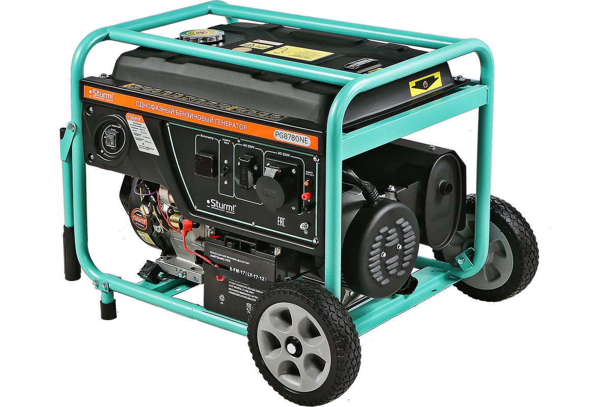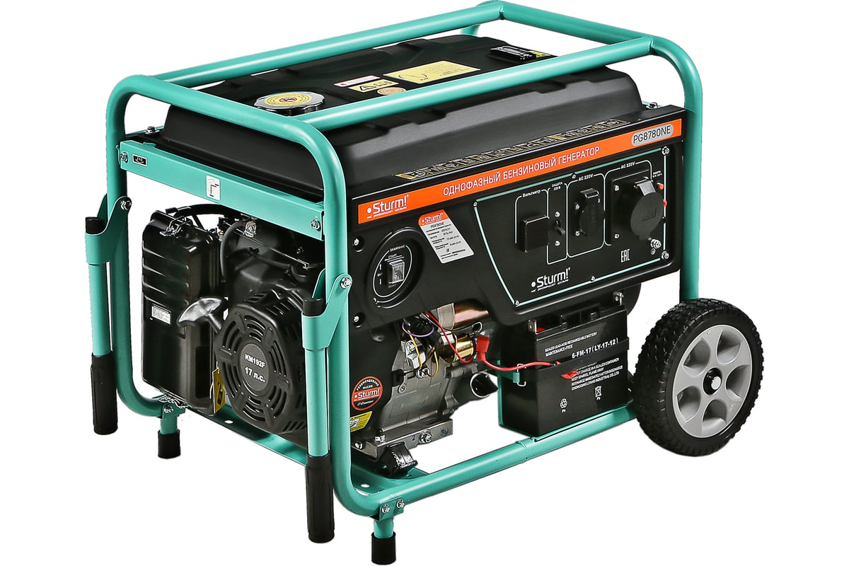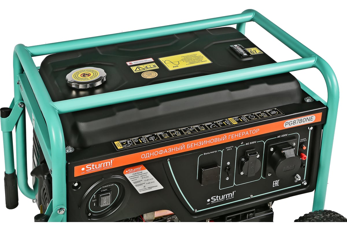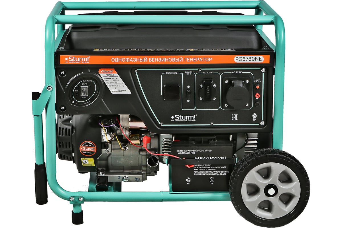 Бензогенератор Sturm , 8000 ВА, AVR (Авто. Рег.Напр.), эл/ручн старт, 77 кг, бак 25л PG8780NE представляет собой мобильное оборудование, которое легко перемещать по строительной площадке и мастерской либо хранить в подвале или гараже частного дома. Модель обеспечивает чистый ток без помех.