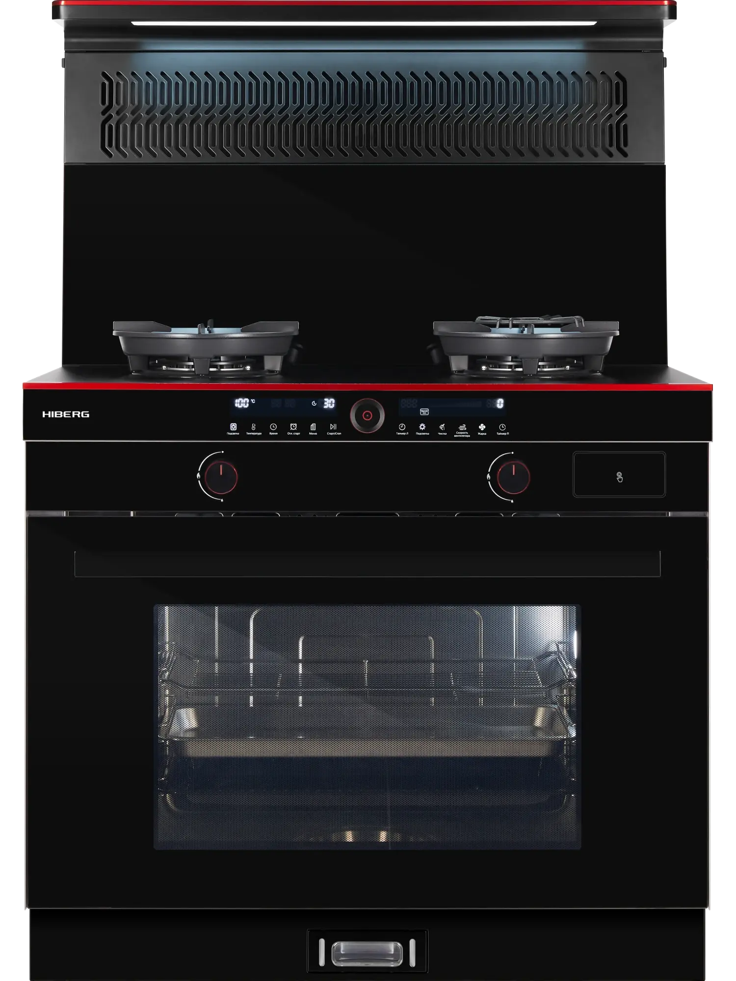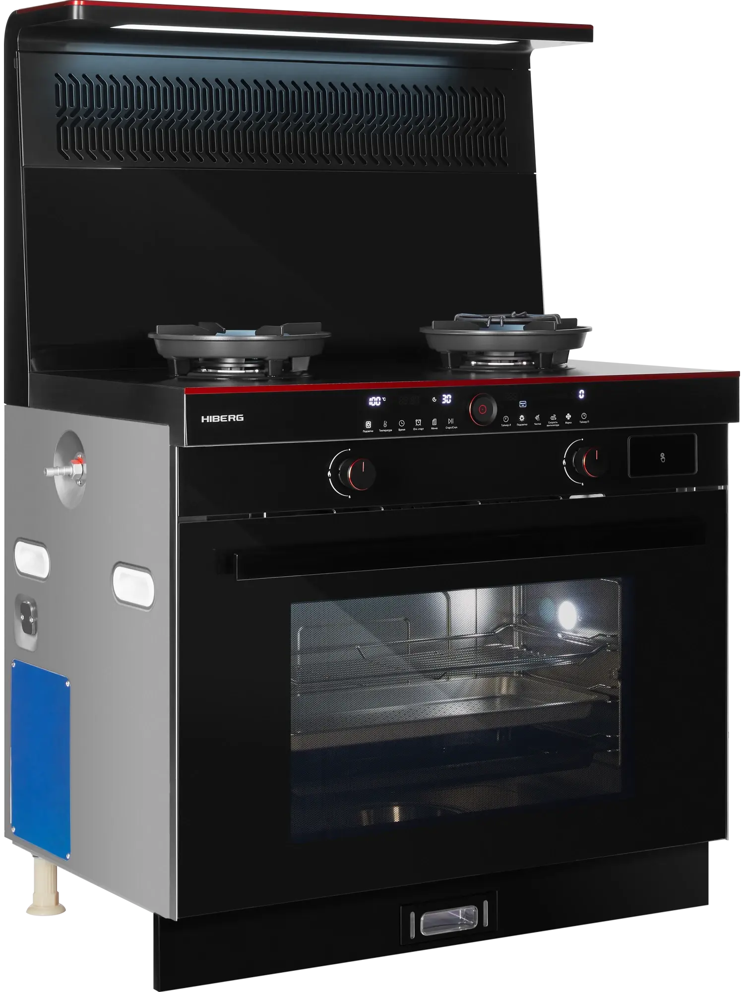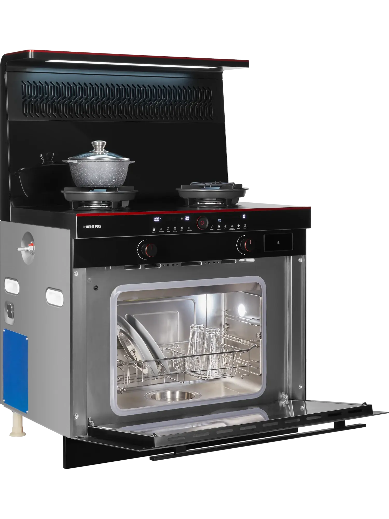 Газо-электрическая плита с интегрированной вытяжкой (DC-инверторный двигатель), парогенератором и конвекцией