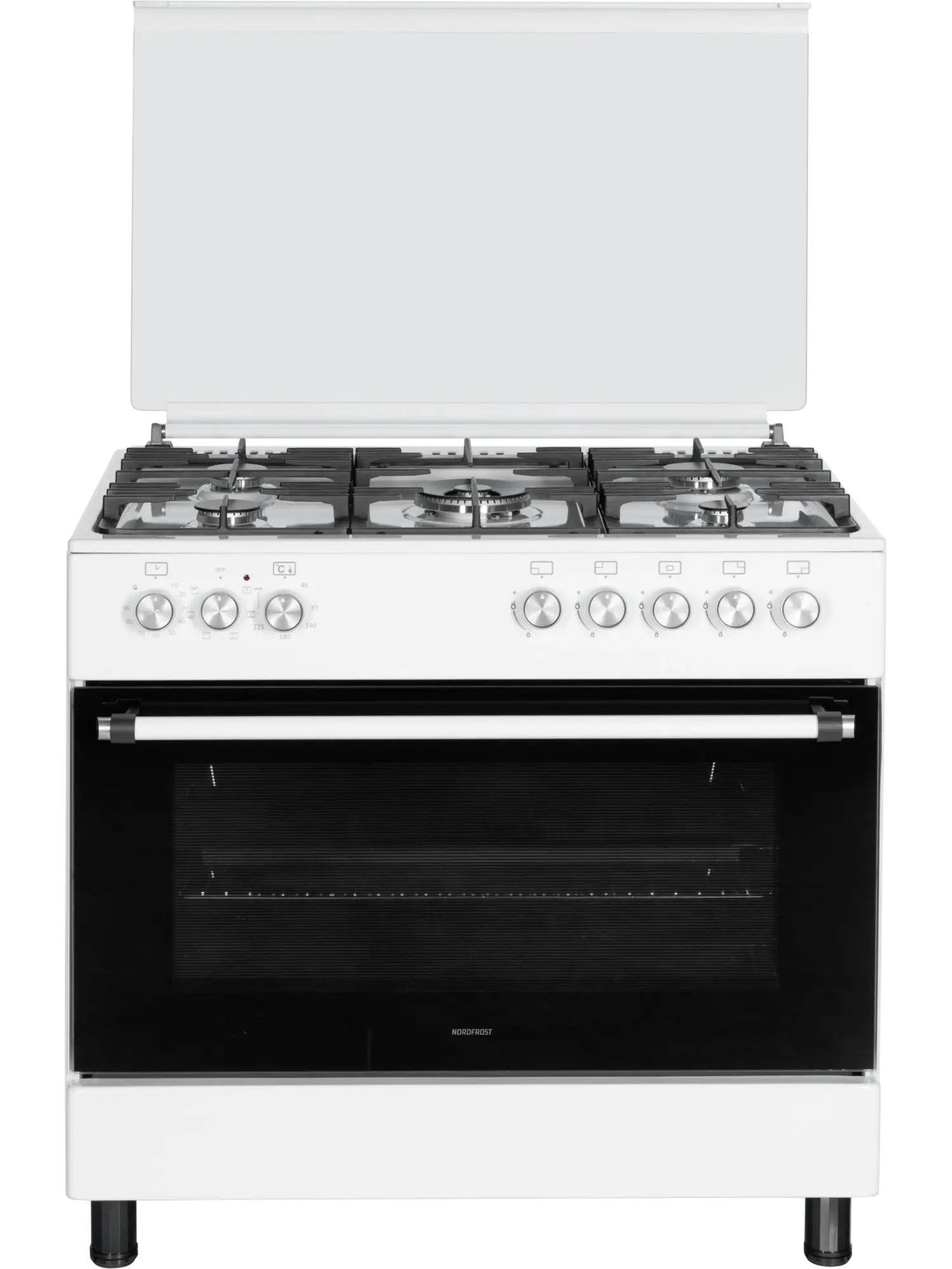 Газовая варочная панель, электрическая духовка, стеклянная крышка, чугунная решетка, ретро-стиль (белая)
