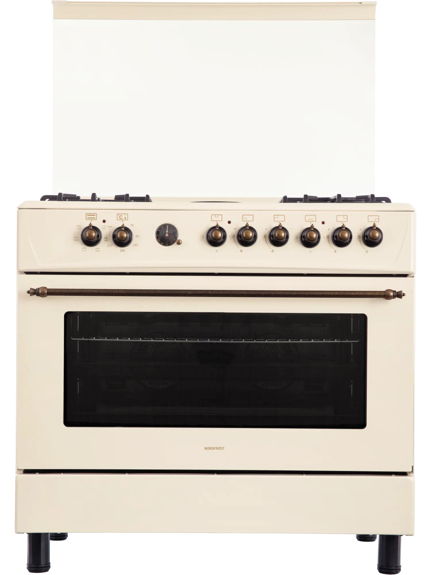Газовая варочная панель + электрическая духовка, ретро-стиль, бежевый цвет