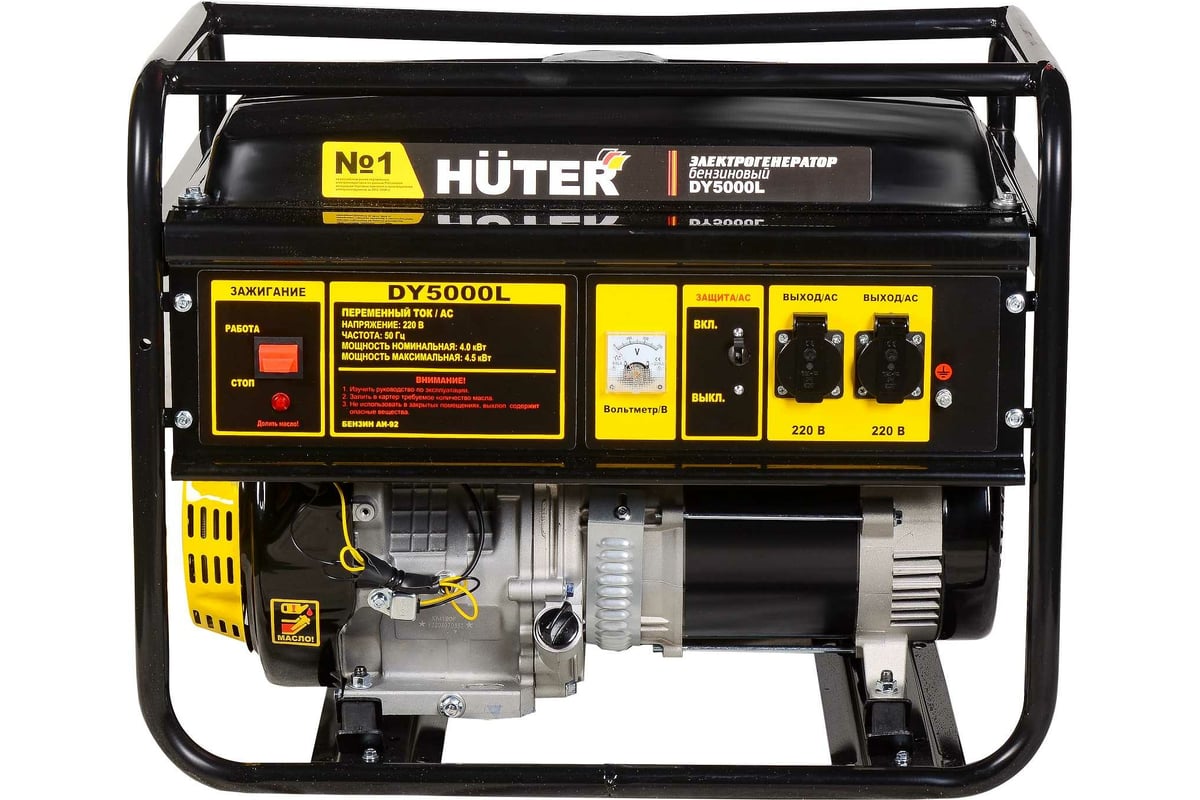 Электрогенератор бензиновый (бензогенератор) - электрическая машина, предназначенная для автономного электроснабжения в повторно кратковременном режиме потребителей бытового и аналогичного назначения, относящихся к классу переносных электроприемников. В качестве первичного двигателя используется карбюраторный двигатель, топливом для которого является неэтилированный бензин. Электрогенератор Huter имеет бытовое назначение.