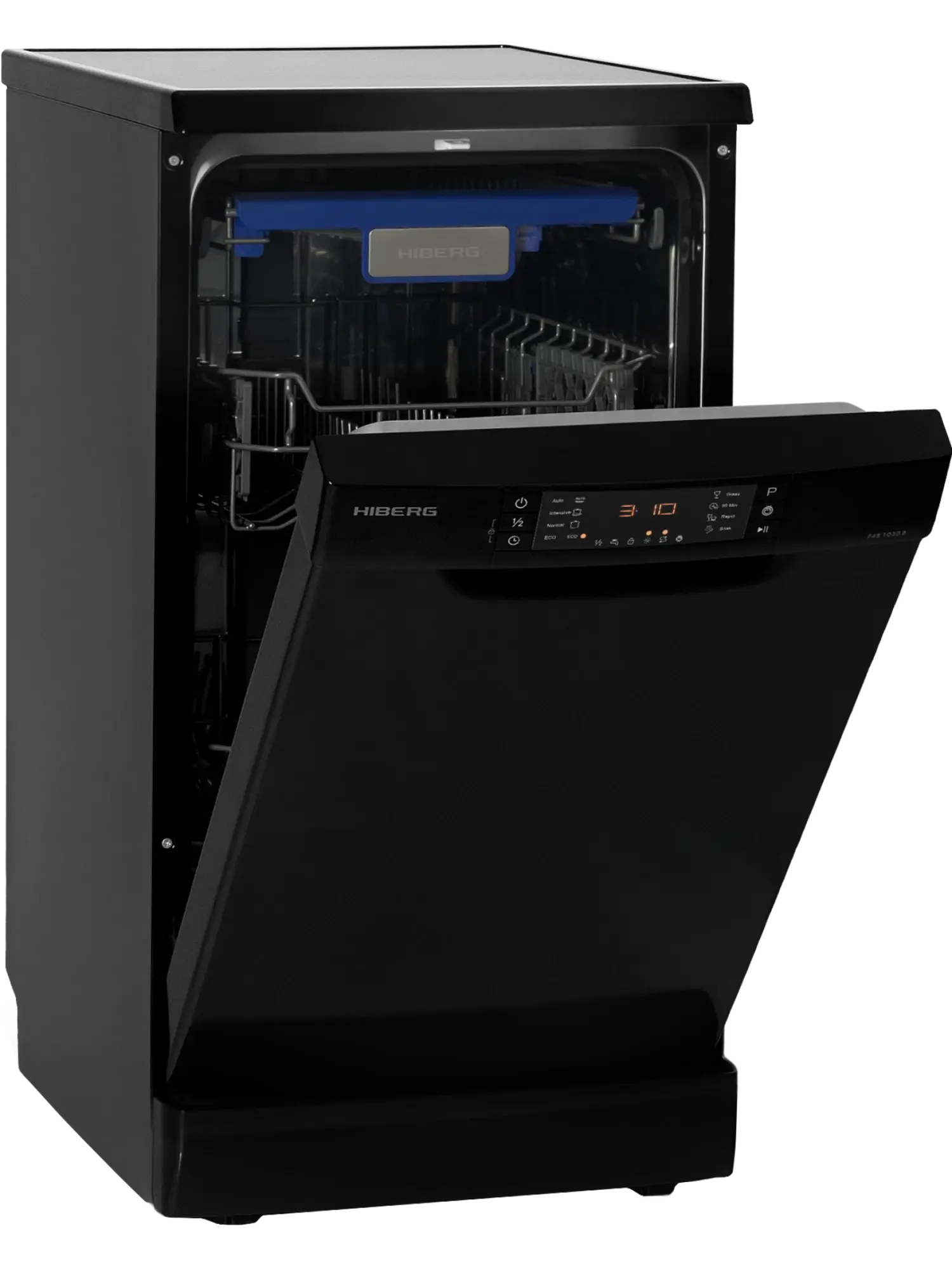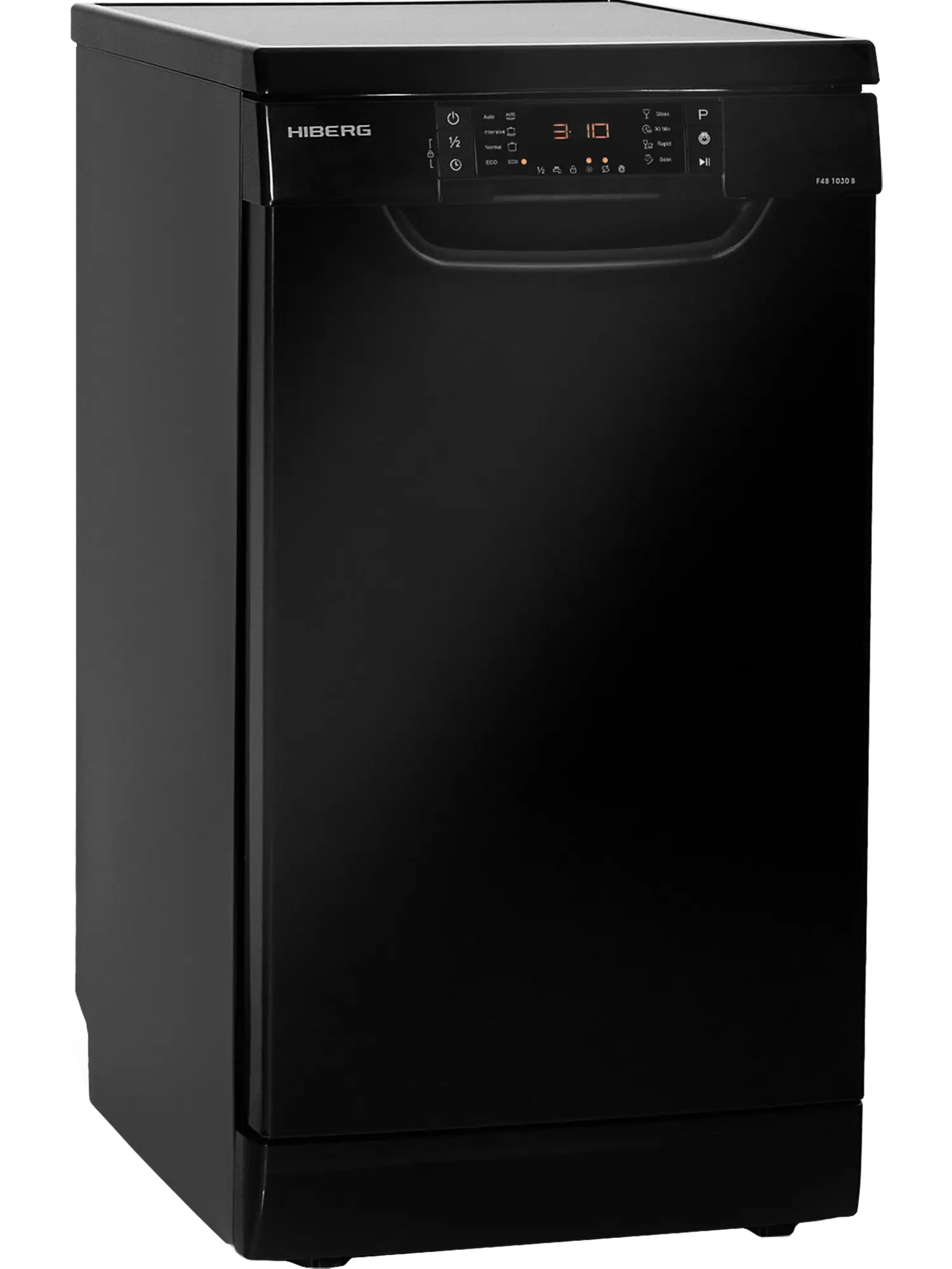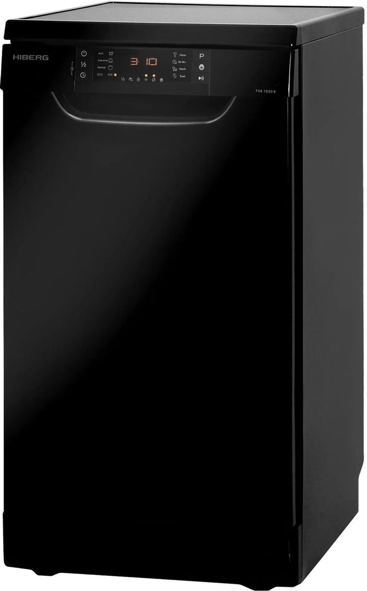 Узкая и отдельностоящая посудомоечная машина HIBERG F48 1030 W -оптимальный вариант для малогабаритных кухонь и ежедневного использования. Модель характеризуется высоким классом энергоэффективности А++, низким уровнем шума, вместительностью до 10 комплектов посуды и 8 автоматическими программами. Панель с дисплеем и электронным управление позволит легко выставить нужный режим. Световые индикаторы на информационной панели укажут на необходимость заполнения емкости ополаскивателя и контейнера с солью.