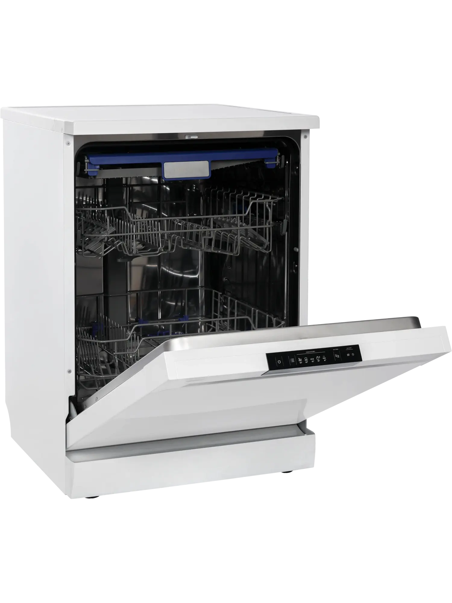 Отдельностоящая полноразмерная посудомоечная машина шириной 59,8 см, вместимостью 14 комплектов, 5 программами и конденсационной сушкой.