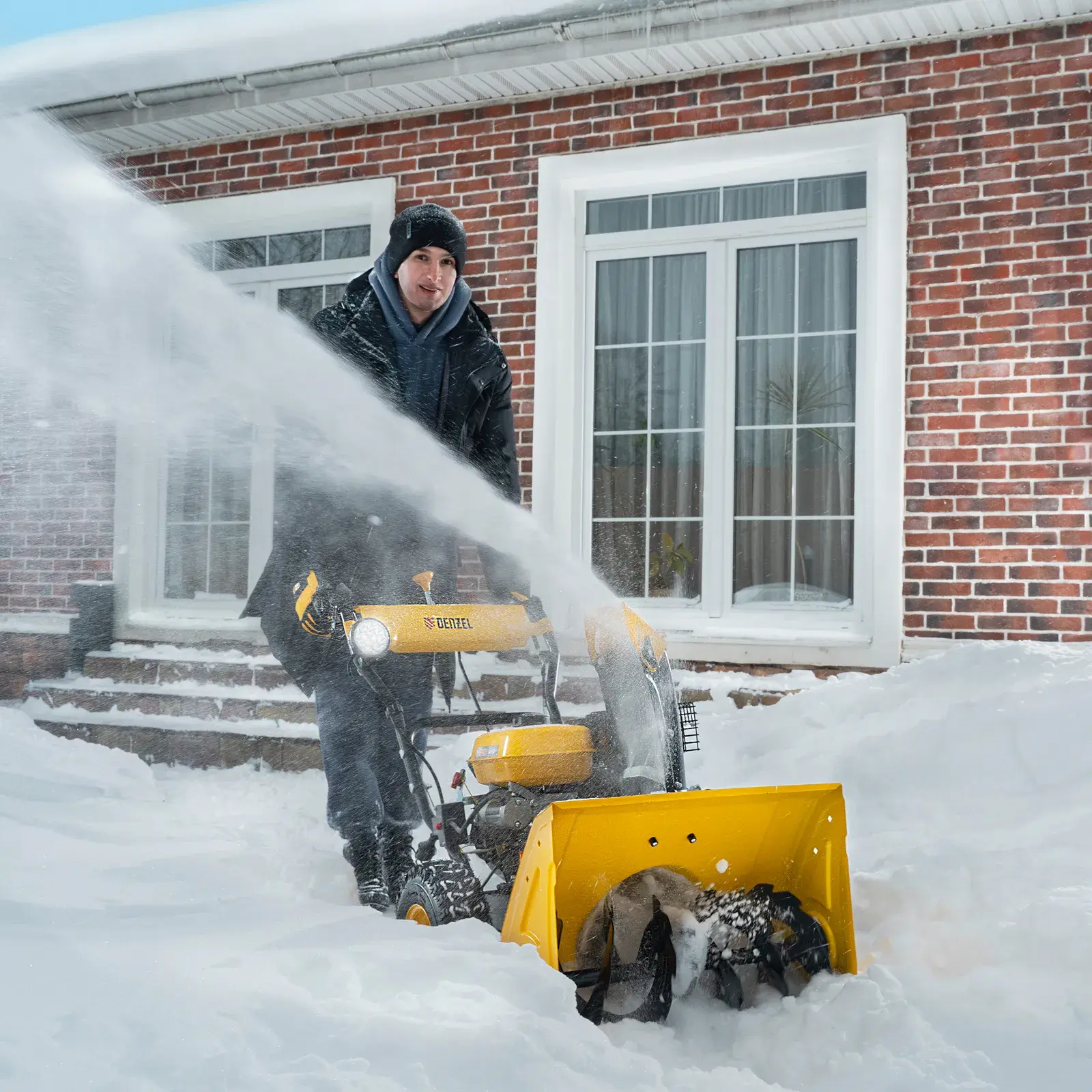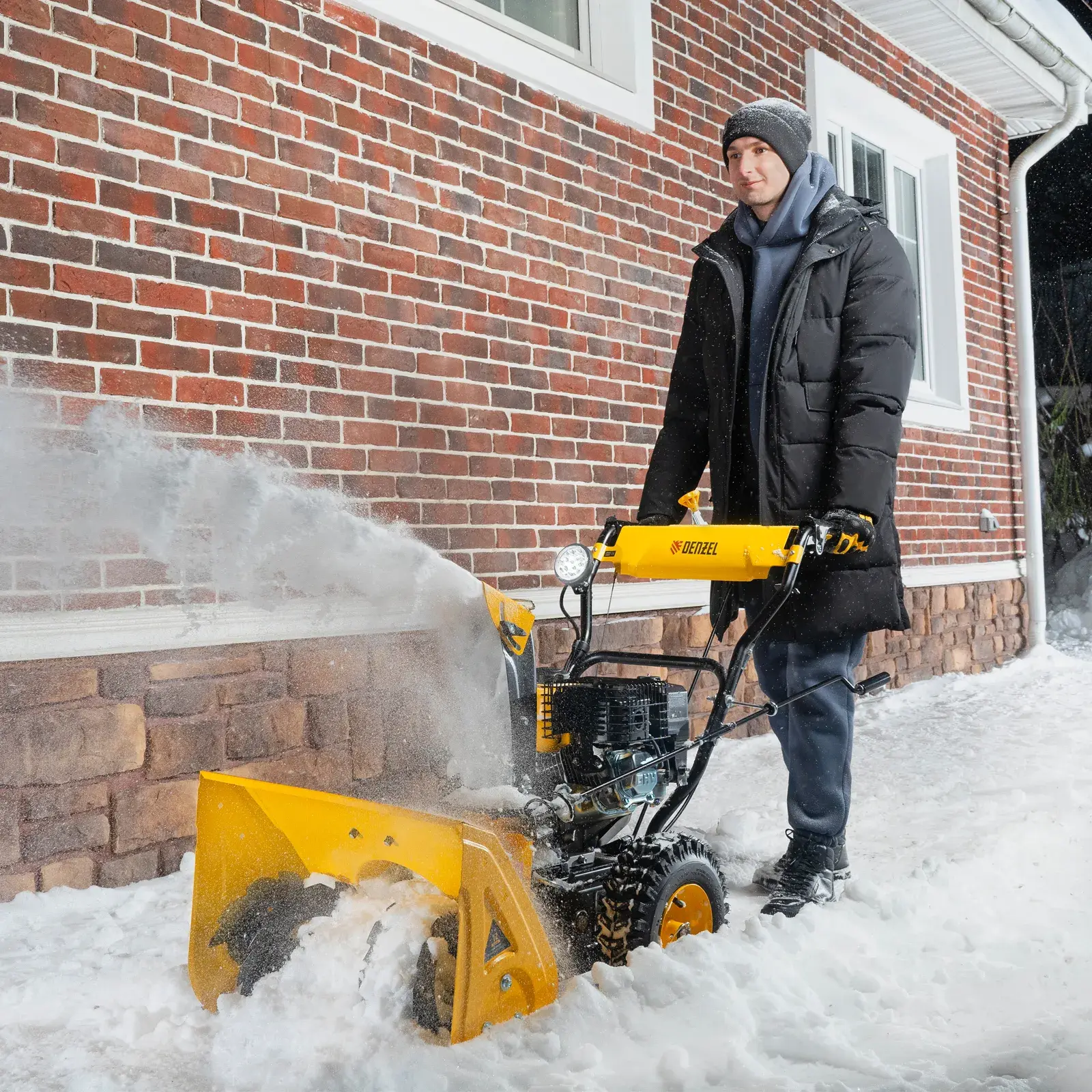 Бензиновая снегоуборочная машина Denzel SB 560 LP 97652 с двигателем объемом 212 cм3, электростартером и фарой предназначена для уборки территорий загородных домов, коттеджей, подъездных дорог и улиц СНТ, парковок и городских дворовых территорий.
