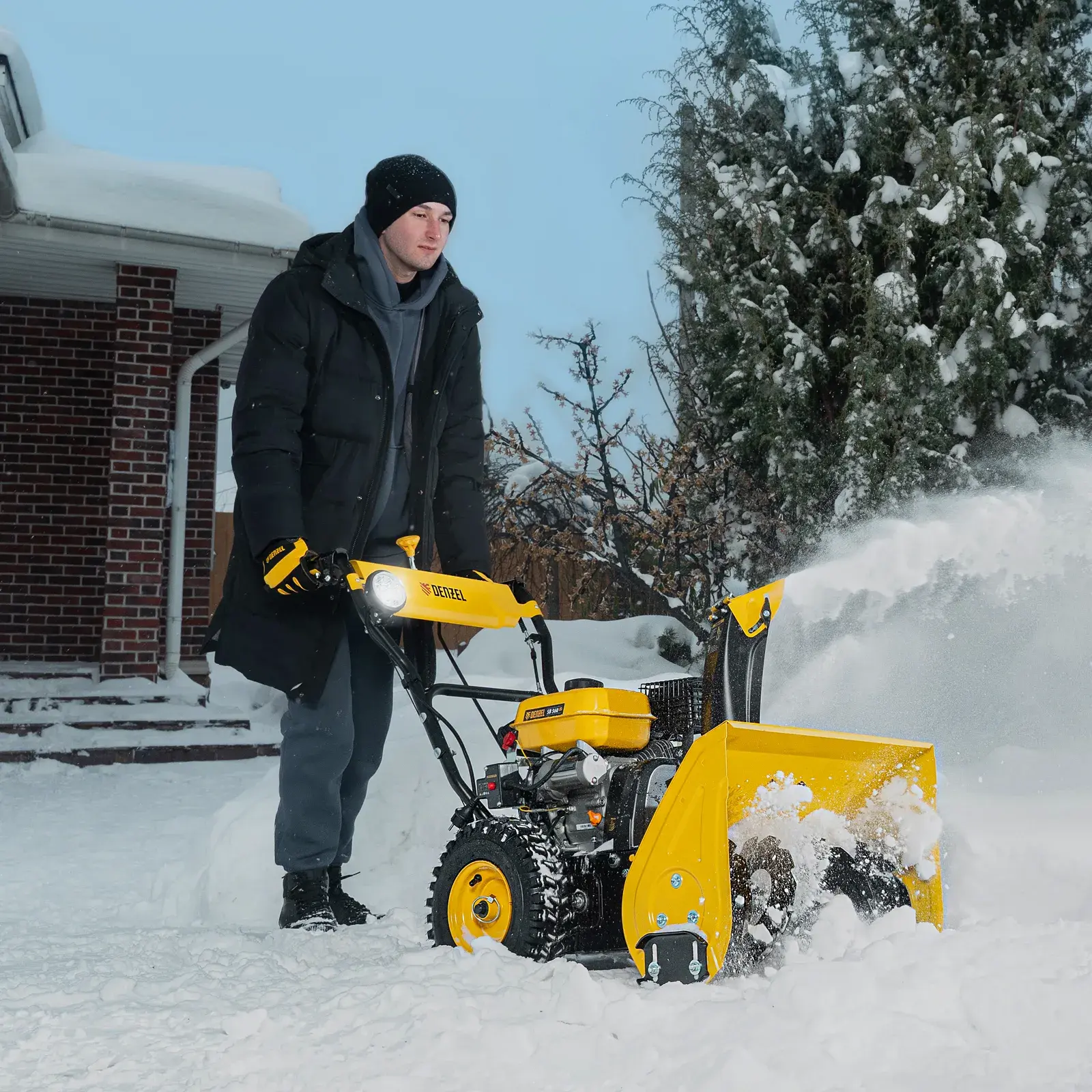Комфортная работа — рычаг поворота желоба позволяет легко выбрать желаемое направление выброса снега, а яркая LED-фара позволяет работать в условиях плохой видимости.