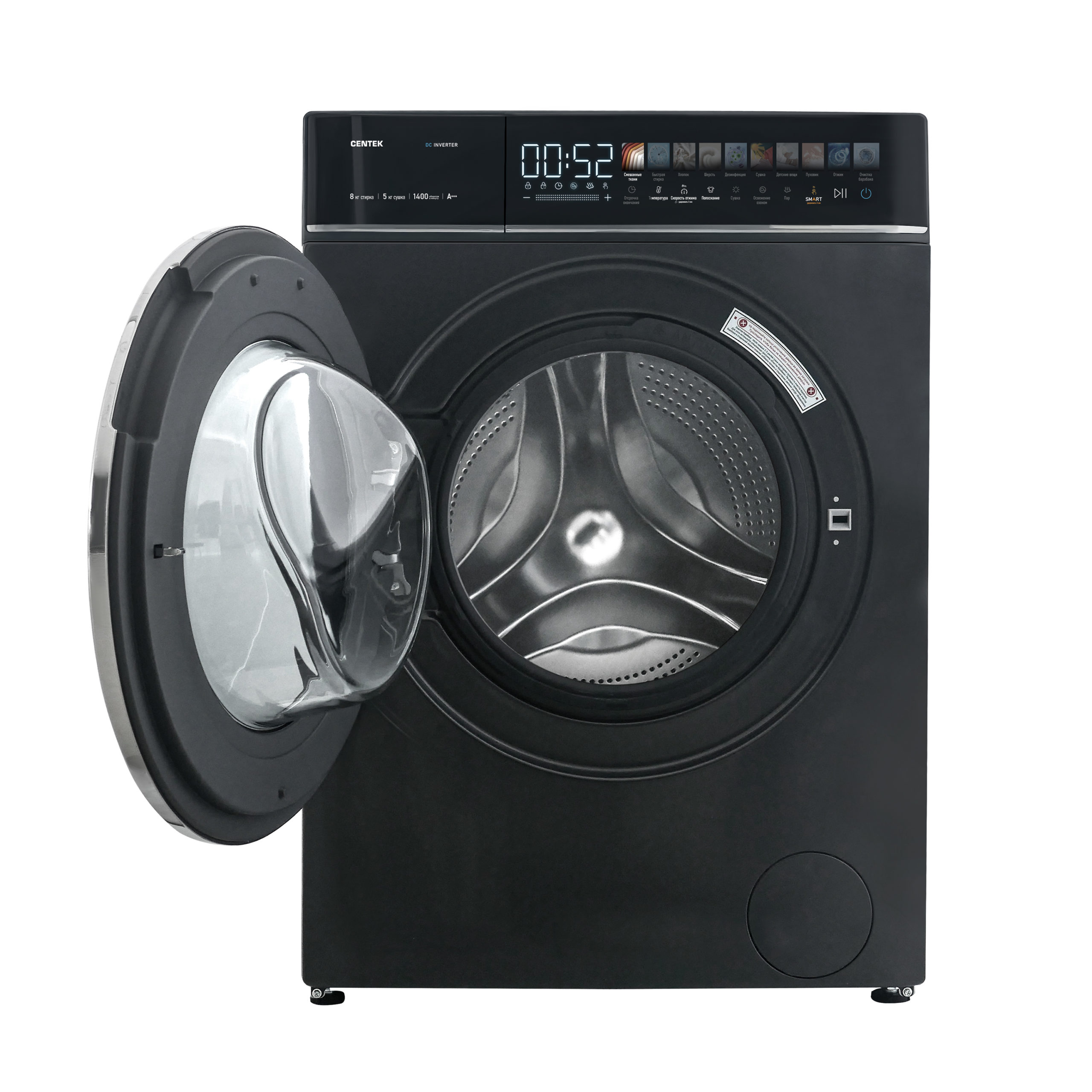 CENTEK СТ-1945 с сушкой экономит место, время и средства. Благодаря сенсорному управлению и информативному LED-дисплею управлять машиной можно в одно касание. Инверторный двигатель обеспечивает бесшумную работу, высокую энергоэффективность А+++, и мощность 2000 Вт.