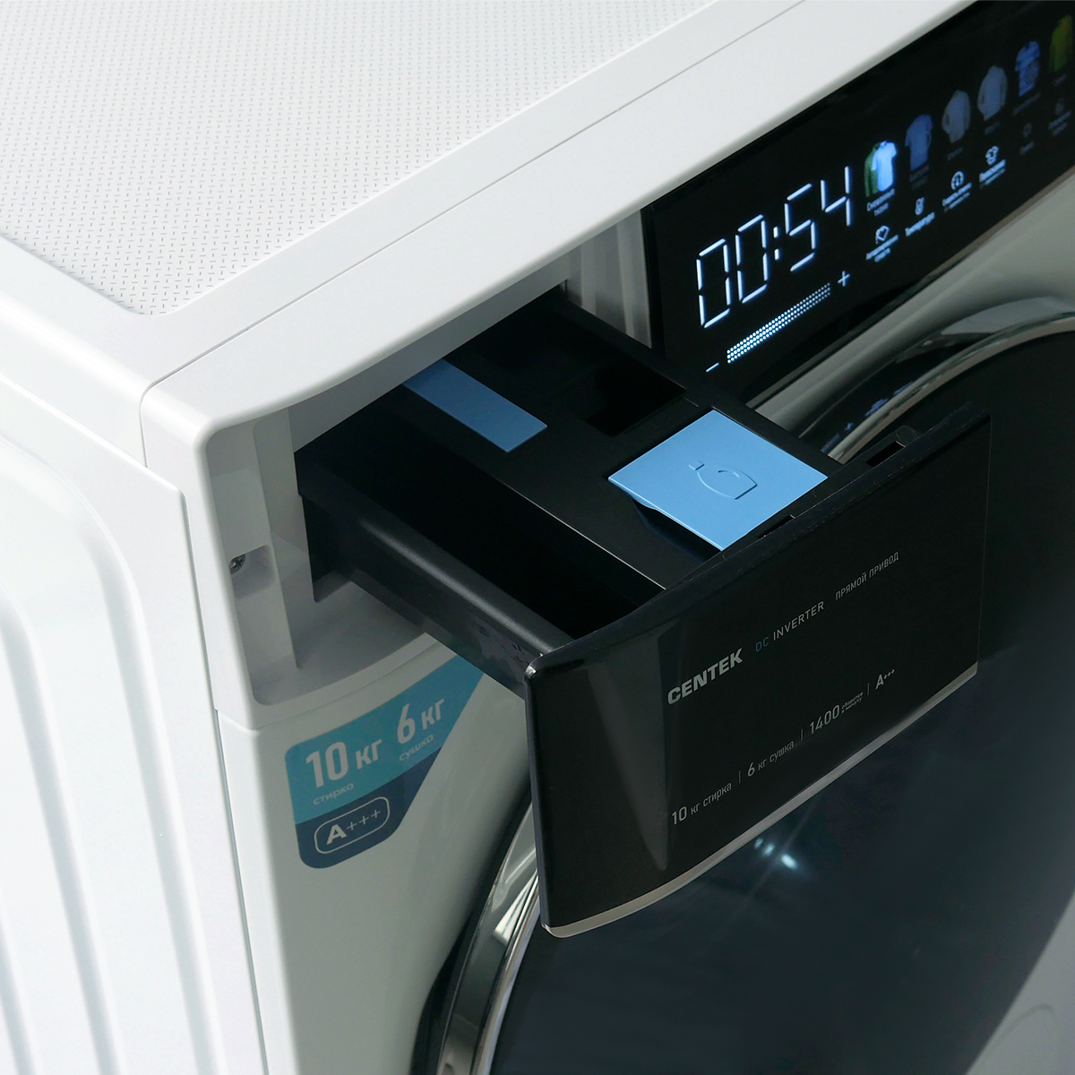 Представляем новинку CENTEK Inverter DIRECT DRIVE MOTOR CT-1975 в классическом белом цвете. Основное преимущество данной модели в сочетании современных технологий и стиля, отсутствии лишних деталей. Машина оснащена цветным цифровым дисплеем и сенсорным управлением, что позволяет быстро определиться с выбором необходимой программы. Инверторный двигатель обеспечивает бесшумную работу, высокую энергоэффективность А+++. Увеличенный объем камеры который рассчитан на 10 кг стирки и 6 кг сушки, диаметр дверцы 520 мм, и функция подсветки барабана – для более комфортной загрузки и разгрузки белья. Антибактериальная манжета люка предотвращает появление плесени и неприятных запахов. Помимо основных функций, машина оснащена функцией SMART – стирка в одно касание. Инверторная стиральная машина с прямым приводом CENTEK CT-1975 – новый взгляд на привычный уход за вещами.