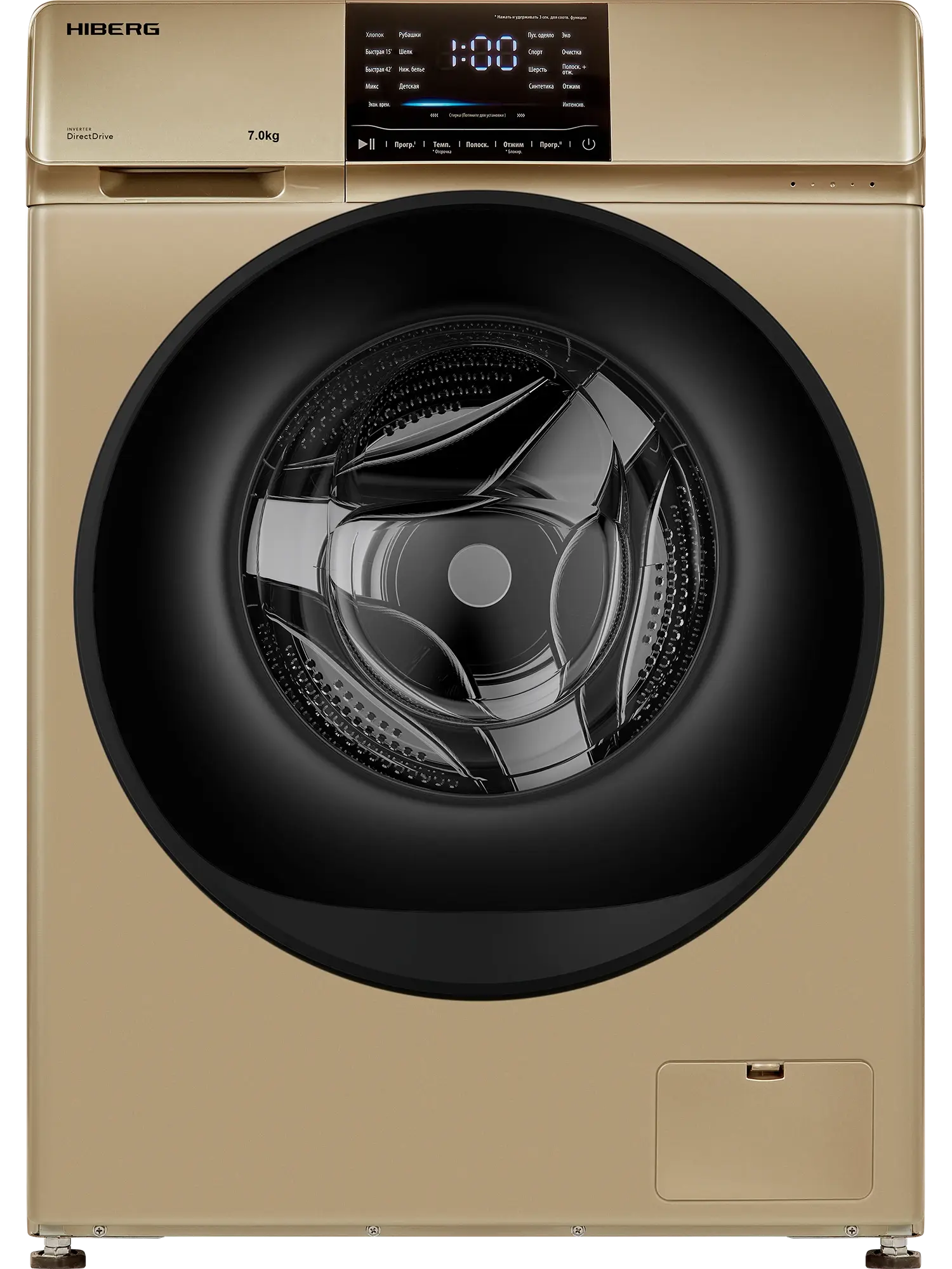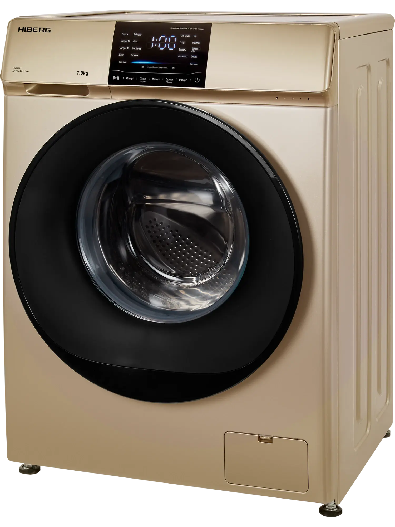 Отдельностоящая стиральная машина HIBERG i-DDQ6 - 712 G с инверторным мотором и системой прямого привода отстирывает до 7 кг сухого белья за 1 цикл.