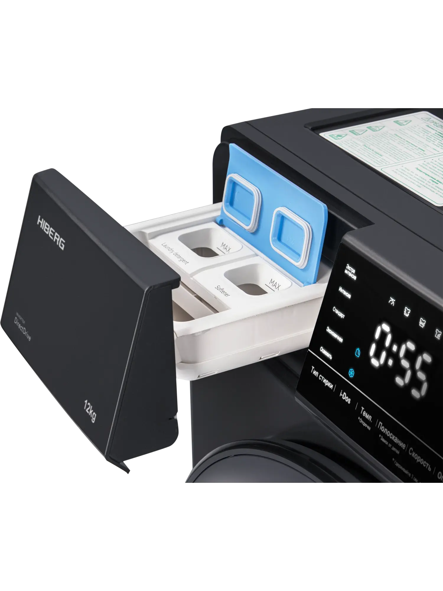 Отдельностоящая стиральная машина HIBERG i-DDQ6A - 1214 Sd с инверторным мотором и системой прямого привода отстирывает до 12 кг сухого белья за 1 цикл.