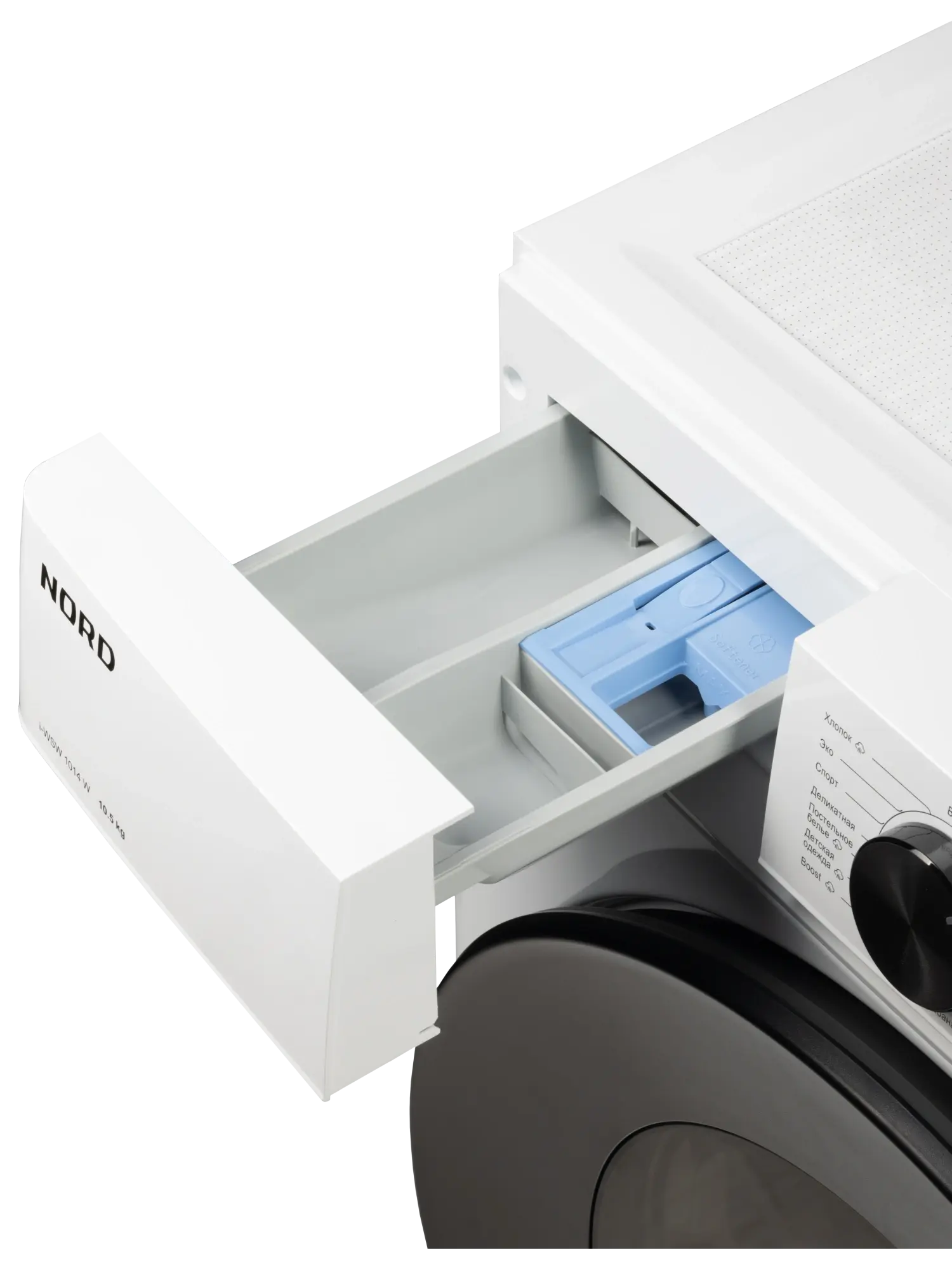 Стиральная машина Nord i-WS W 1014 W — надёжная и вместительная модель для ежедневного использования. Оснащена инверторным двигателем с низким уровнем шума, стабильной работой и энергоэффективностью A+++. Максимальная загрузка — 10,5 кг, скорость отжима — до 1400 об/мин, что позволяет быстро и качественно удалять влагу из белья. Программы (15 автоматических): – Хлопок, Эко, Спорт, Шерсть, Деликатная и Смешанная стирка; – Для детской одежды и постельного белья; – Быстрая стирка — 15 мин, Интенсивная — 42 мин, режим Boost; – Полоскание + отжим, Отжим; – Стирка паром для дезинфекции и устранения запахов; – Программа очистки барабана. Функции и особенности: – Система Smart — автоматический выбор параметров по загрузке; – Контроль пенообразования, автобалансировка, автовзвешивание; – Регулировка температуры, скорости и полосканий; – Предварительная стирка, отсрочка старта 3–24 ч; – Блокировка от детей; – Волновой барабан из нержавеющей стали для бережной стирки; – Интуитивное LED-управление с поворотным селектором и сенсорными кнопками. Характеристики: – загрузка: 10,5 кг; – скорость отжима: 1400 об/мин; – энергоэффективность: A+++; – размеры: 595×600×850 мм; – диаметр люка: 314 мм; – угол открытия: 150°; – гарантия: 2 года. Nord i-WS W 1014 W — функциональная, технологичная и стильная стиральная машина, идеально подходящая для большой семьи.