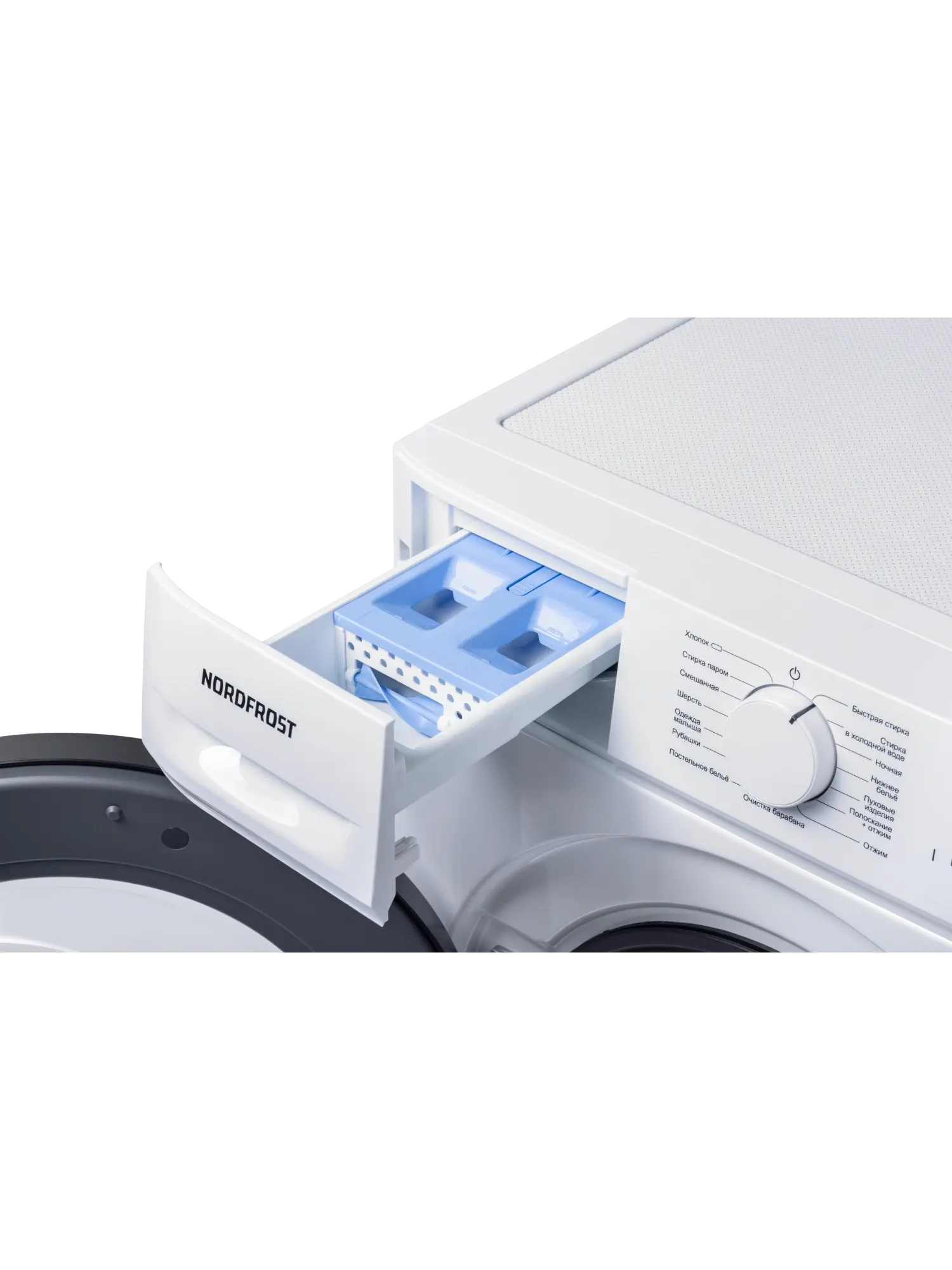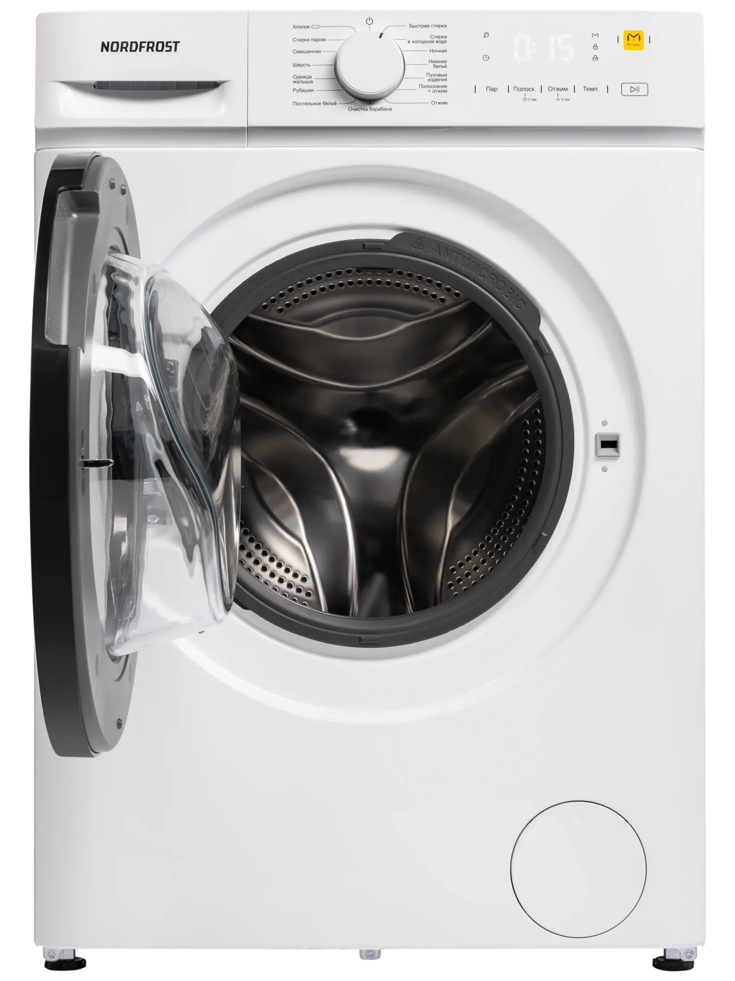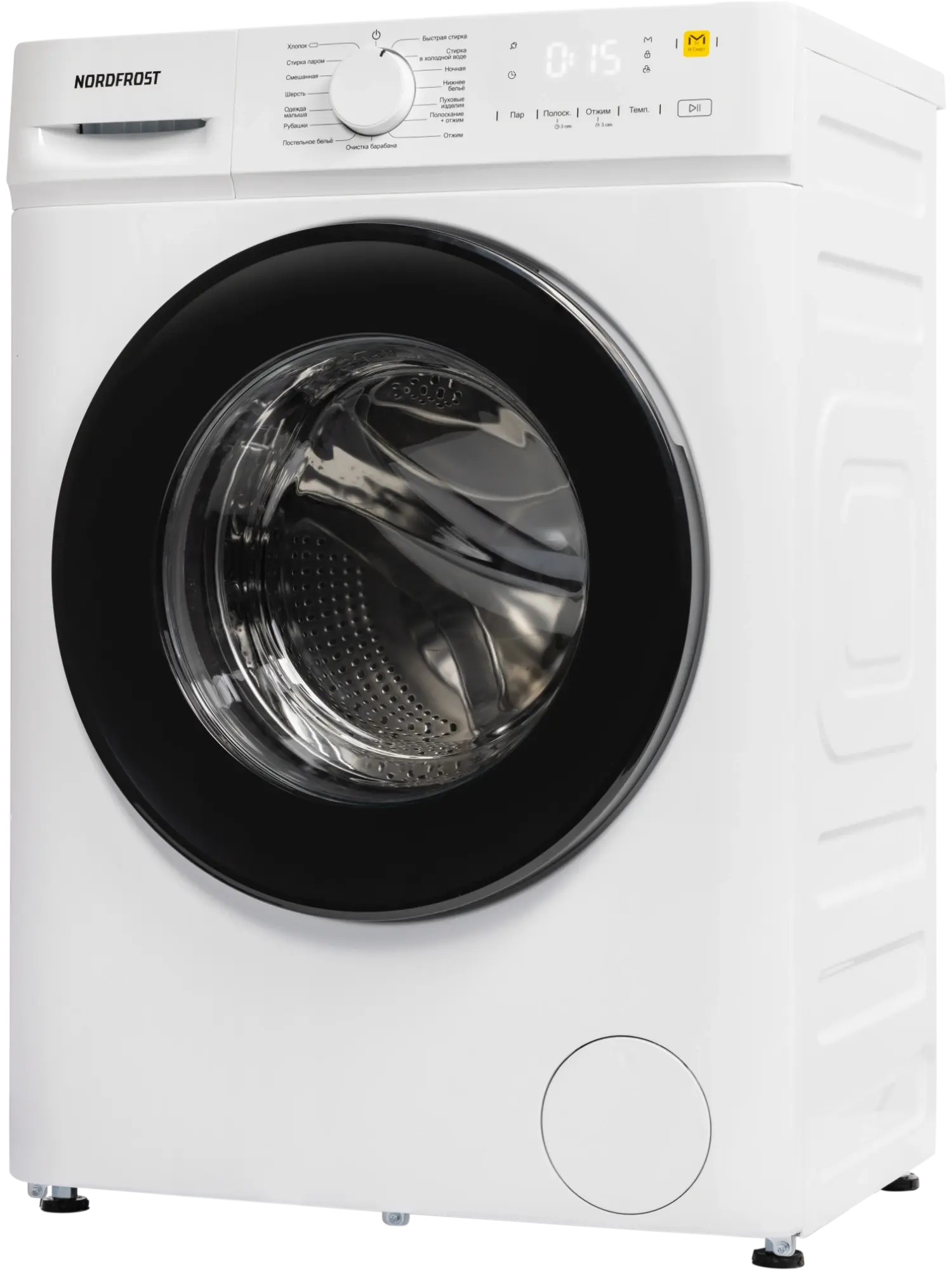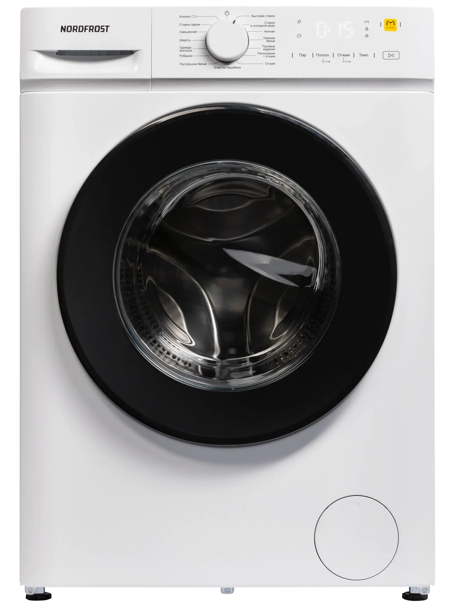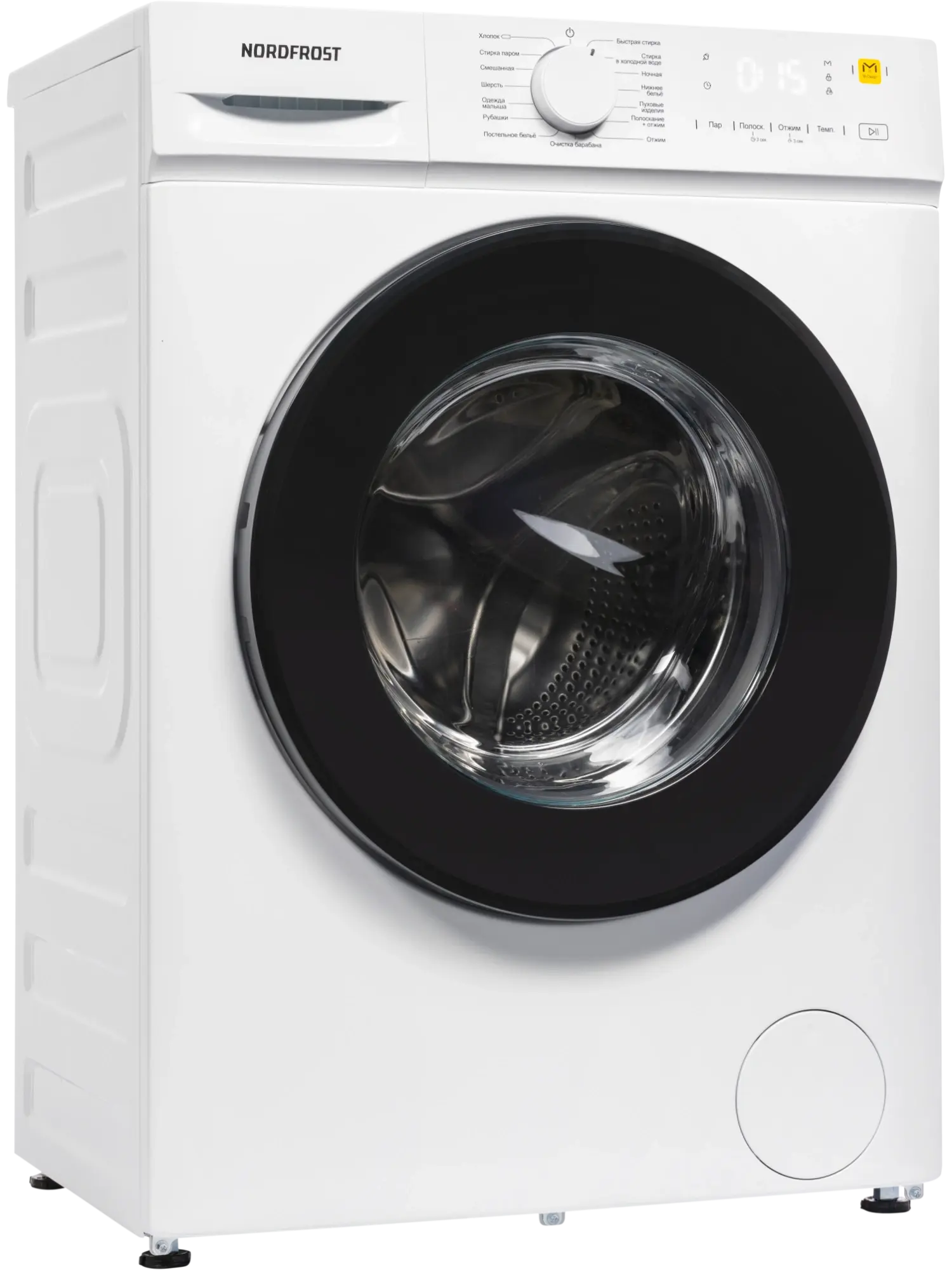 Стиральная машина Nord i-WQ5 7120 W — современная инверторная модель с функцией стирки с паром, обеспечивающая бережный уход за бельём. Рассчитана на 7 кг загрузки, имеет скорость отжима до 1200 об/мин и класс энергоэффективности A+++. Инверторный мотор работает тихо, устойчиво и экономично. Корпус выполнен в белом цвете с чёрным люком, что придаёт модели стильный, контрастный вид и делает её универсальной для любого интерьера. Управление: механический диск выбора программ и кнопки регулировки температуры и отжима. На LED-дисплее отображаются параметры и состояние стирки. Функции и программы: – 16 автоматических программ для хлопка, шерсти, смешанных тканей, детской одежды, постельного белья и пуховых изделий; – Интеллектуальная программа M-Smart — автоматический выбор параметров стирки в одно касание; – Стирка с паром — освежает бельё, устраняет запахи, бактерии и аллергены; – Быстрая стирка — 15 минут; – Отсрочка старта до 24 часов; – Избранная программа, ночная и холодная стирка; – Дополнительное полоскание и дозагрузка белья; – Очистка барабана; – Блокировка от детей. Конструкция: – AquaStop — защита от протечек и перелива; – Контроль пенообразования и дисбаланса для стабильной и тихой работы; – Барабан из нержавеющей стали с бережным рельефом. Характеристики: – загрузка — 7 кг; – отжим — 1200 об/мин; – энергоэффективность — A+++; – 16 программ; – LED-дисплей; – цвет — белый с чёрным люком; – гарантия — 2 года. Nord i-WQ5 7120 W — стильная, функциональная и надёжная стиральная машина с интеллектуальным управлением и паровой стиркой для безупречного ухода за одеждой.