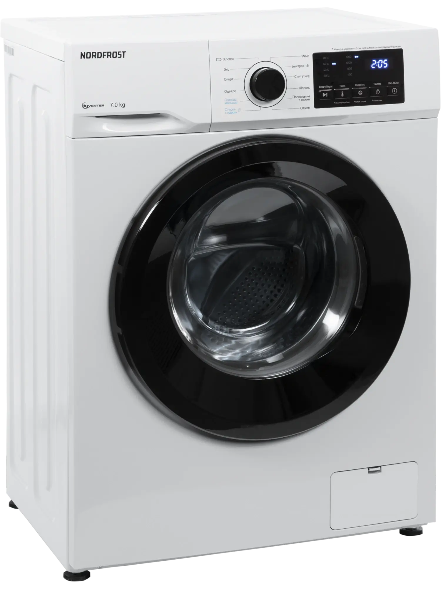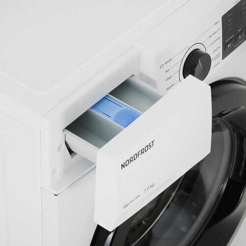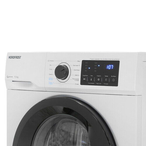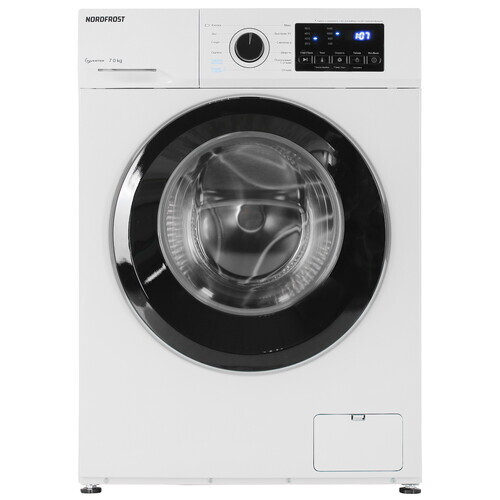 Отдельностоящая стиральная машина Nord i-WSQ4 7140 W с функцией пара имеет прекрасный показатель загрузки белья до 7 кг и инверторный мотор. Он работает тише стандартного, отличается долговечностью и ресурсосбережением.