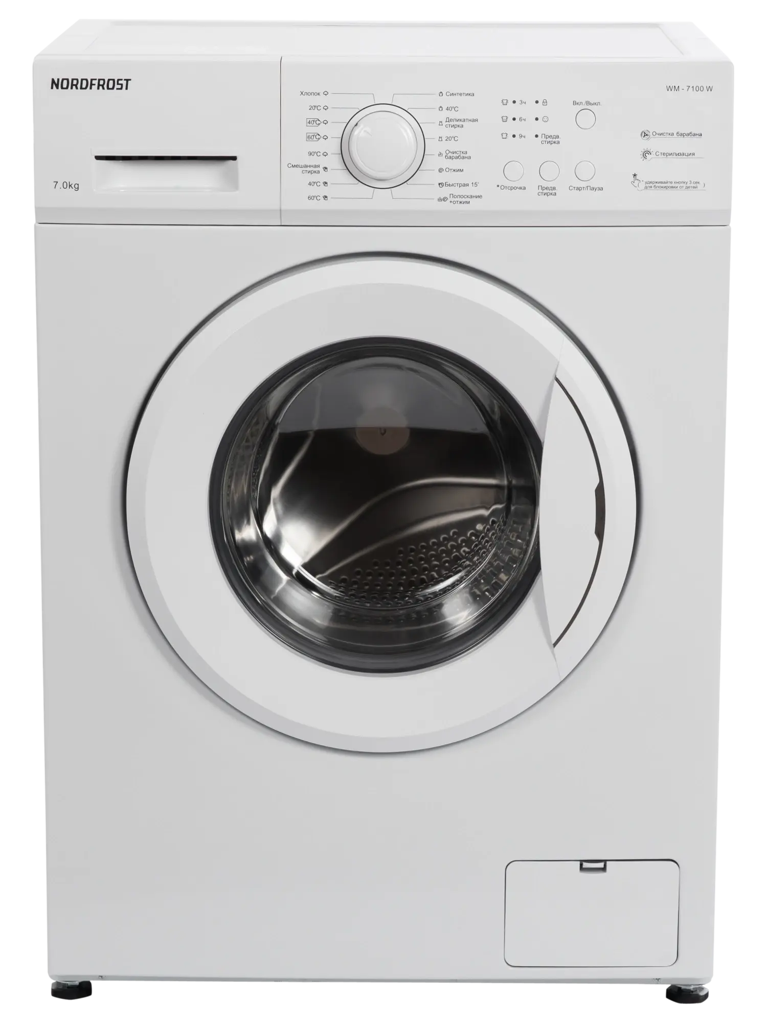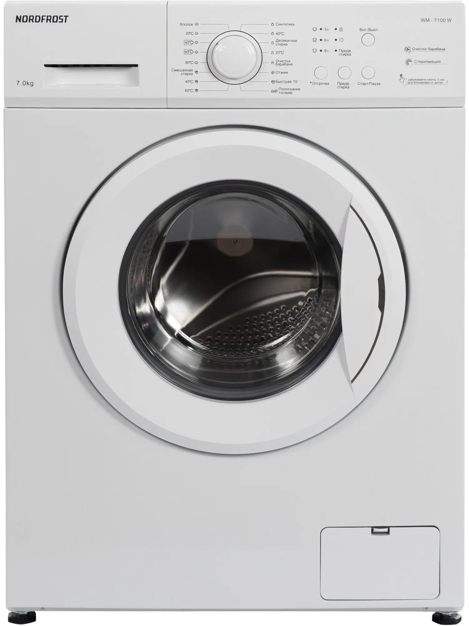 Стиральная машина Nord WM 7100 W с объемом бака 46 л и загрузкой белья до 7 кг – функциональная, компактная, надежная и понятная в использовании модель, а ее современный и стильный дизайн идеально впишется в интерьер вашей ванной или кухни!